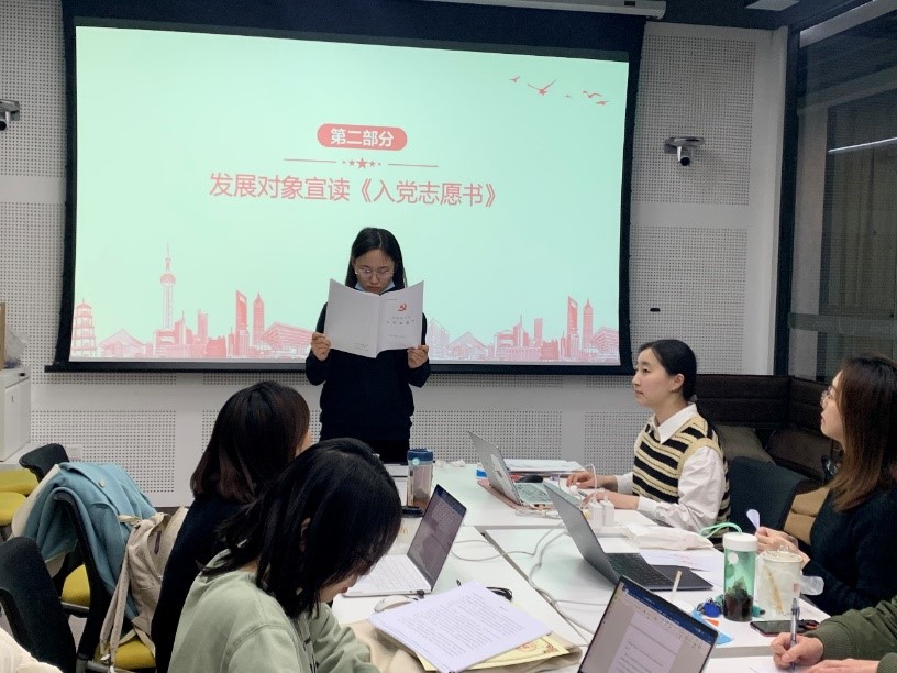 2021年3月21日晚上,研究生第十六党支部的成员在金丰和306教室召开了2021年度的党支部发展大会。第十六党支部党支书詹洁辰主持了本次会议。在本次会议上,杜鑫、张万泉、滕琳三位发展对象被发展为预备党员,光荣的加入党组织,成为第十六党支部的一员。 会议内容安排包括:发展对象宣读入党志愿书、介绍人宣读意见、支书宣读发展对象政治审查报告、支部书记主持支部大会讨论、宣布计票人和监票人支部大会全体正式党员投票表决、宣读支部大会决议、发展对象发表入党感言、党支部全体党员合影留念这八个流程。对于杜鑫、张万泉、滕琳三位同学依次进行发展,以下新闻内容根据会议流程对于三位同学的讨论和结果进行了合并介绍。 全体起立唱完国际歌后,第十六党支部党支书詹洁辰介绍本次大会流程及发展顺序,本次发展对象为杜鑫、张万泉、滕琳三位同志。 杜鑫宣读入党志愿书,说明入党动机及平时的表现,其介绍人为刘明玥和申思雨,宣读介绍人意见;张万泉宣读入党志愿书,其介绍人为詹洁辰和申思雨,宣读介绍人意见;滕琳宣读入党志愿书,其介绍人为杨思敏、刘明玥,说明入党动机及平时的表现。 支部书记詹洁辰同志宣读政治审查综合报告并提请支部大会讨论。到场的党支部成员都依次进行热烈的讨论。 党支部成员认为杜鑫同志积极向党组织靠拢,该同志积极向党组织靠拢,关心时事政治,努力学习相关理论知识,在学习上勤奋努力,认真科研,平时与同学关系融洽,群众基础良好,积极参加班级院系活动,在思想上要求进步,关心国家大事;在学习上,肯钻研,善思考;在生活上,乐观向上,助人为乐。综合来看,一致同意杜鑫同志成为中共预备党员。 党支部成员认为张万泉同志自从提出入党申请后,积极参加党组织活动,能经常向党组织汇报思想,自觉以党员标准严格要求自己,有服务同学的意识和上进的心态,平时不计较个人利益,有无私奉献和为党的事业奋斗终身的决心,该同学勤奋刻苦,吃苦耐劳,希望以后能更加严于利己,综合来看,一致同意张万泉同志成为中共预备党员。 党支部成员认为滕琳同志自觉用党员标准严格要求自己,认真学习党的基本理论、基本路线和基本知识,不断提高对党的认识和政治理论水平,入党动机端正;学习方面刻苦努力,认真学习专业知识;积极参与学部项目,工作方面十分认真,能够较好地完成各项工作任务;生活方面能做到严于律己、宽以待人,能够很好地团结同学。综合来看,一致同意滕琳同志成为中共预备党员。 讨论过后,支部大会全体正式党员进行表决。詹洁辰同志宣读支部大会决议:支部大会应到会正式党员7名,实到会5名,收到书面意见2份。大会采用无记名投票的方式进行表决。对于杜鑫、张万泉、滕琳同志的表决结果皆为:7票赞成,0票反对,0票弃权,赞成人数超过应到会正式党员的半数,支部大会通过接受杜鑫、张万泉、滕琳同志加入党支部,成为中共预备党员。 最后,杜鑫、张万泉、滕琳三位同志都发表了感言,表示接受同志们提的意见,入党不是终点,而是新的起点,三位预备党员表示将不断地学习进步提升自己,为共产主义事业奋斗终身。大家在大会的最后进行合照留念,并祝贺三名新同志的加入。 撰稿人:顾晓莹 |