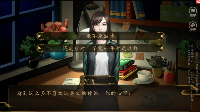 为深入学习宣传贯彻习近平总书记关于疫情防控工作的系列重要讲话和指示批示精神,认真贯彻落实习近平总书记给北京大学援鄂医疗队全体“90后”党员的回信精神,贯彻落实学校党委《致全校党(团)组织和全体党(团)员、干部的一封信》的指示要求和工作部署,激励和引领我校青年学子进一步坚0定制度自信,在新时代进一步传承弘扬五四精神,在党和人民最需要的地方贡献力量、绽放青春。根据学校党委、共青团中央、学校团委的部署要求,团支书带领各位班委和同学在一周的时间内完成了“在疫情期间”的线上互动游戏,受到了同学们的欢迎和好评。 图1 同学在体验战疫志愿者的游戏 游戏根据“北师大心灵之声”上污污漫画 师生战疫志愿者的真实故事为原素材,经由二次剧本创作而成。希望可以通过这款游戏让各位团员尽量以更为沉浸和有趣的方式体验那些奉献时间精力的志愿者们的故事和他们经历的困难和感动。整个游戏分为三个章节,分别介绍了热线/网络辅导、社区志愿者、心理科普志愿者的故事。 图2、3 游戏内截图 参与制作的班委付出了很多时间和精力在剧本创作和制作上:“这次活动我见证了一个橙光游戏从无到有的过程,剧本本身就很细致、很动人,制作成游戏后,更能让人感受到这些志愿者工作的危险、辛苦还有工作的难度。”赵子豪同学这么说道。 各位同学在游玩游戏过后,都纷纷表达反馈了对于剧情的感受和启发: 三个游戏是疫情期间我们的真实状态写照,也是许多中国大学生的现实状态,迷茫,孤独,恐惧,担忧…而随着疫情的发展衰退,大家也明白我们需要发挥自己的作用,无论是咨询者、志愿者、作者、每个人都在用自己的方式对抗疫情,面对生活。在这离开校园的几个月,每个人都在成长。 ——杨春阳