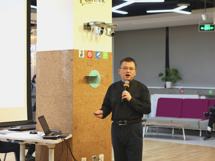 图1 双创空间(i-School)邀请唐文老师讲座 唐文先生提出,互联网时代的商业核心主题就是指数级增长,而最明智的创业创新方式就是用省钱的方式实现指数级增长,即精益创业+轻营销测策略。