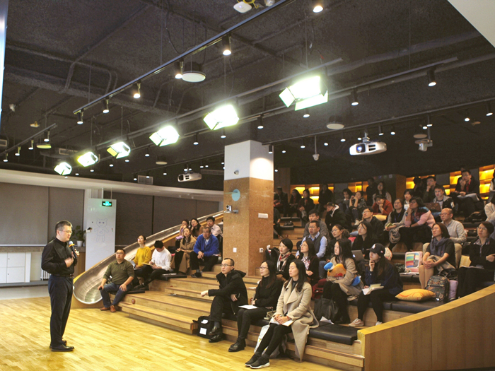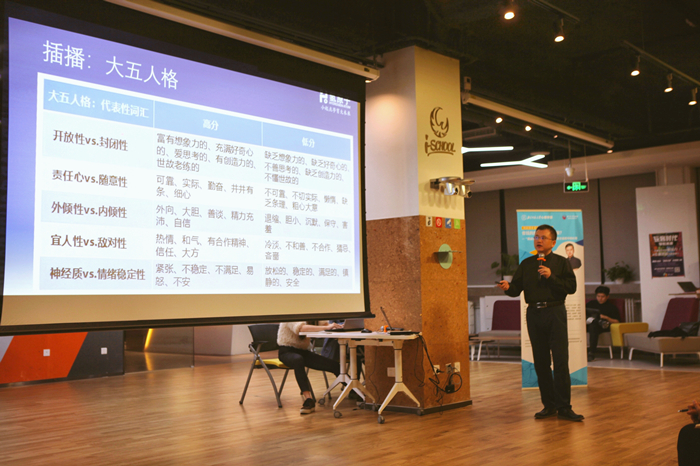 图2 唐文老师在双创空间(i-School)现场分享案例 唐先生介绍了轻营销这个概念,这个概念的理念即“一切商业问题,归根到底是人的问题”,唐先生运用深入浅出的讲述方式,讲解了剑桥分析对美国总统大选产生影响的案例,剑桥分析就是运用心理学的知识,运用网络大数据来分析人们的希望和恐惧,做到在网络上“精准投放”广告,从而影响人们的决策。此后,唐先生介绍了PBC方法:心理学(Psychology)+大数据(Big Data)+定制化互动(Customized Interaction),即如何通过PBC的方法来实现轻营销。