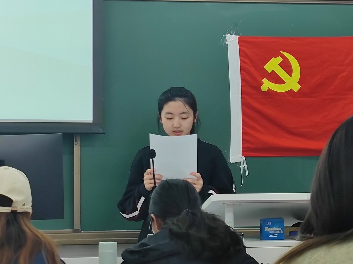 接下来,罗珏同志宣读《转正申请书》。她向党组织汇报了自己的学习、思想、工作情况。在一年预备期中,罗珏同志在思想作风、党性修养、学业方面均取得长足进步,并在支教和教育实习活动中践行教育理念,为成为一名合格的人民教师做准备。 在民主讨论与评议环节,刘千荻同志认为罗珏同志踏实勤奋,认真好学。黄彤彤同志认为罗珏同志在预备期内勤奋刻苦,工作上认真负责,与同学相处融洽,已具备成为一名正式党员的基本素养。