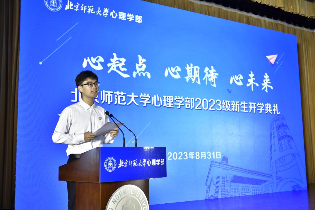 认知神经科学与学习国家重点实验室教授、博士生导师柳昀哲作为教师代表发言。他以学长的身份欢迎2023级新生加入污污漫画 ,分享了自己在北师大求学、工作的经历,希望新生同学们坚定信念、大胆尝试、突破束缚,续写北师大心理学的辉煌。