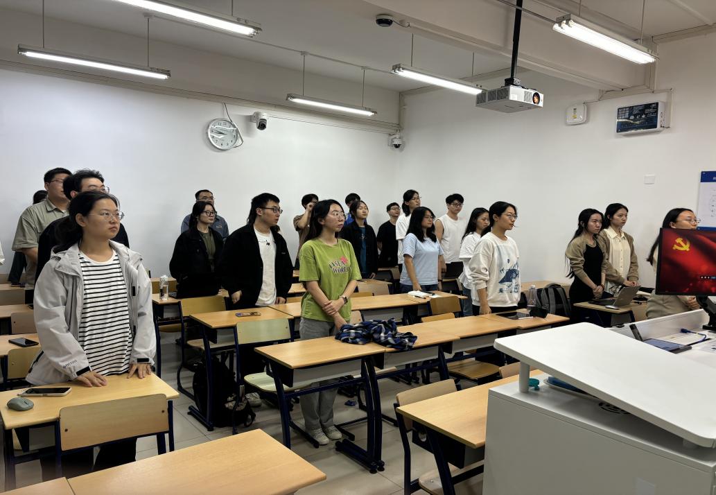 2024级学术硕士第一党支部书记武宇杰同志主持。 首先,全体同志齐唱《国际歌》。