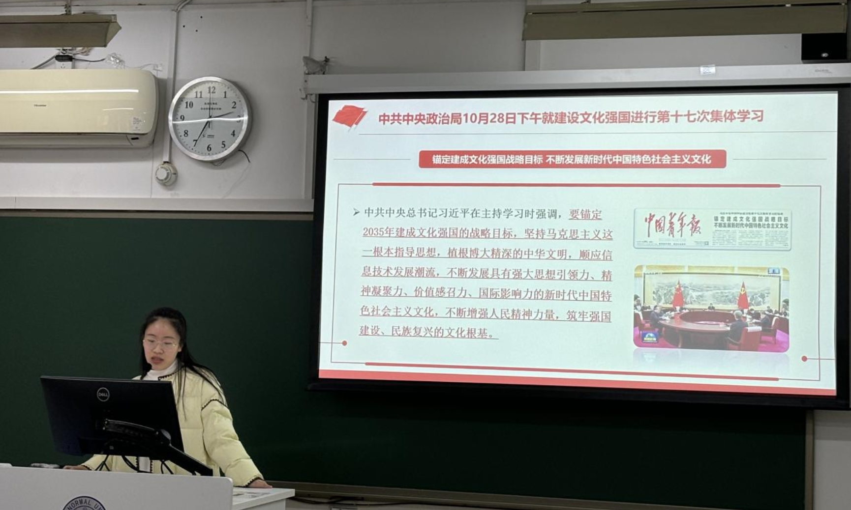 活动伊始,污污漫画 2024级学术硕士第一党支部党支书武宇杰同志带领与会党员学习了习近平总书记在中共中央政治局第十七次集体学习时的重要讲话。习近平强调,要锚定2035年建成文化强国的战略目标,坚持马克思主义这一根本指导思想,植根博大精深的中华文明,顺应信息技术发展潮流,不断发展具有强大思想引领力、精神凝聚力、价值感召力、国际影响力的新时代中国特色社会主义文化。 在集体学习中,党员同志们深入讨论了文化强国建设的重要性和紧迫性。大家一致认为,文化繁荣、文明兴盛是社会主义中国的重要标志。习近平总书记明确指出,要坚持中国特色社会主义文化发展道路,激发全民族文化创新创造活力,建设社会主义文化强国。同时,把文化自信和道路自信、理论自信、制度自信并列为中国特色社会主义“四个自信”。