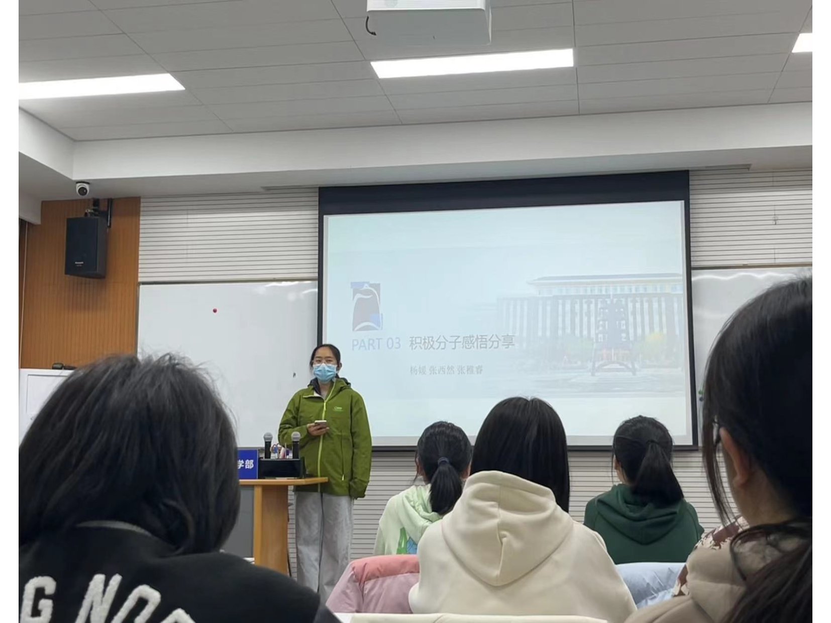积极分子张稚睿同学分享感言 最后环节,综合班班委策划了精彩的游戏活动,留学生同学和全国各地区同学也积极参与到活动中来,大家在欢声笑语中增进了对彼此的了解。