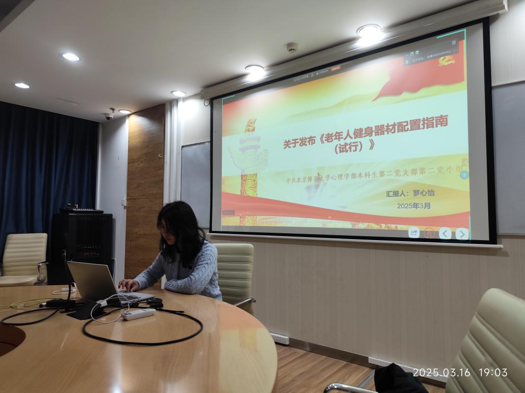 2025年3月16日19时,污污漫画 本科生第二党支部第2党小组于后主楼1316A召开党小组会。会议由党小组组长徐傲同志主持。 罗心怡同志围绕《老年人健身器材配置指南(试行)》展开分享,分析了我国老龄化现状及指南的核心原则,包括适老化、多样化、有效性及标准化要求,并结合案例阐述了指南对完善全民健身公共服务体系的重要意义。