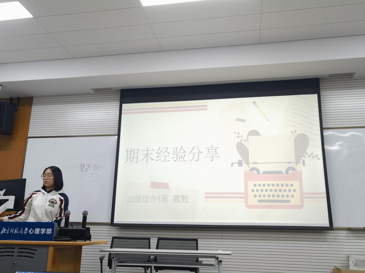 2024年12月14日晚18时30分至19时30分,学业辅导室在金丰和609举办了面向2023级综合班同学的期末经验分享会。22级本科综合2班的丁蓝同学和22级本科1班的魏勉同学作为嘉宾,分享了实验心理学、心理学史、实验心理学实验、心理测量和发展心理学的复习方法,提醒了考试的注意事项,对同学们的复习很有帮助。