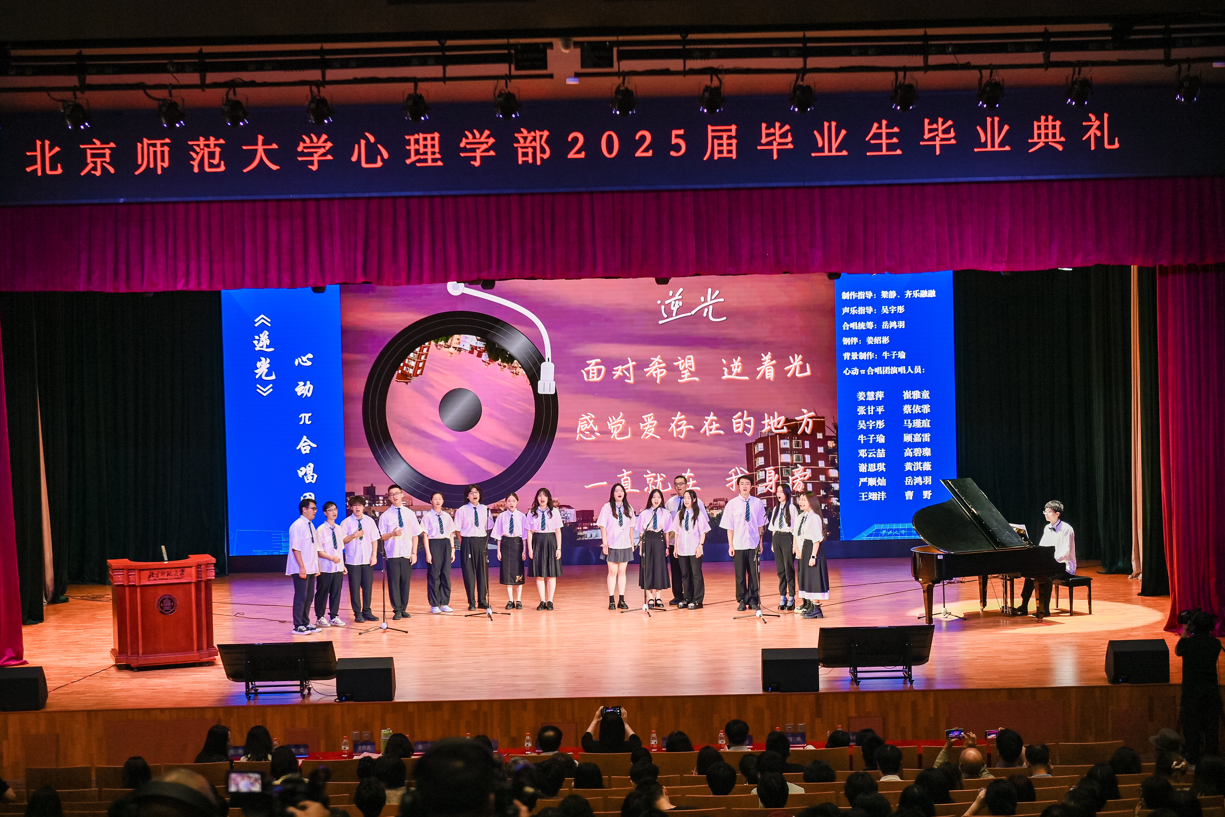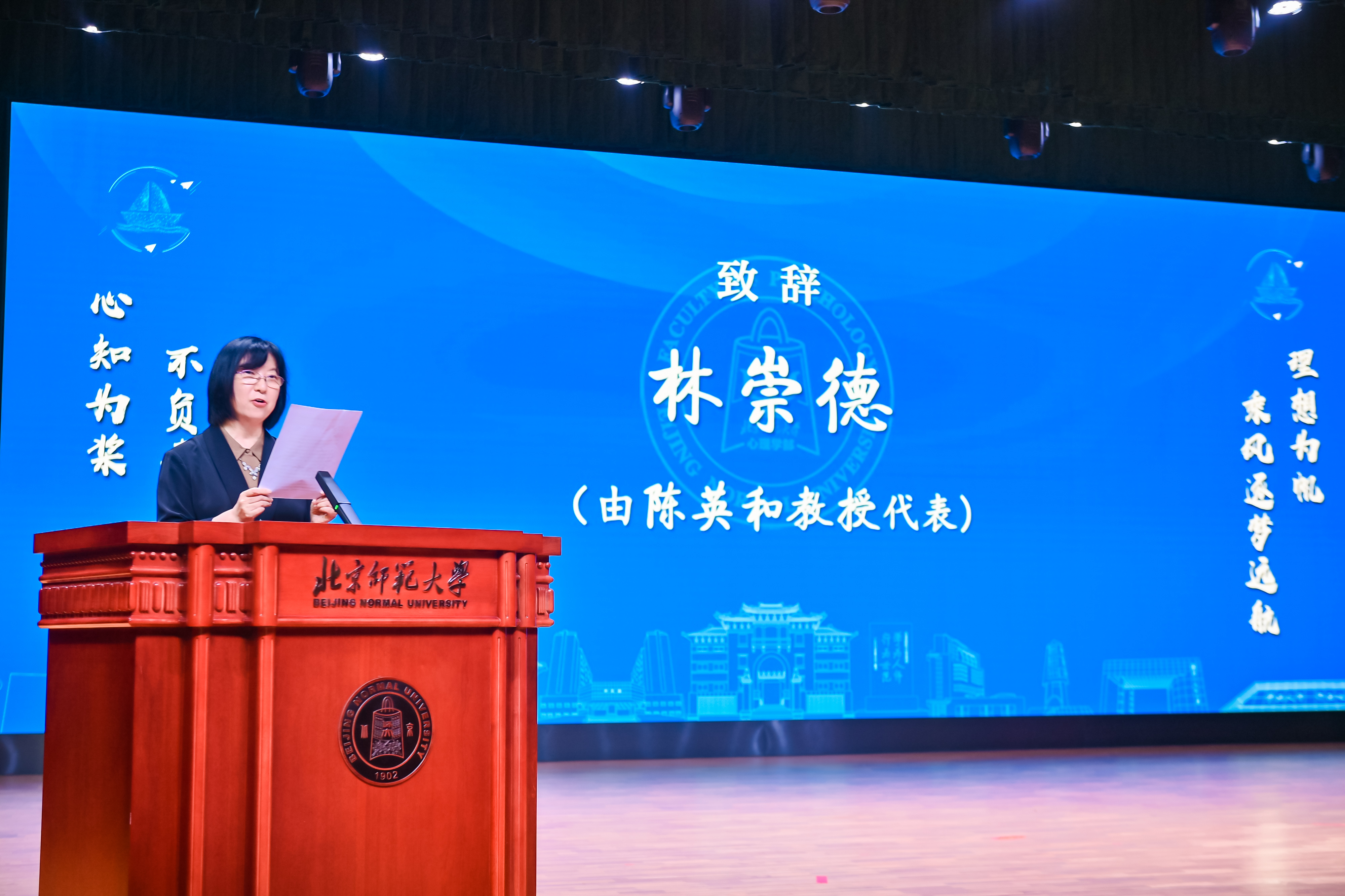 著名心理学家林崇德先生也为毕业生们带来了寄语和祝福(由陈英和教授代为致辞)。林先生首先深情回顾了六十年前北师大首届心理专业学生的毕业情境,他语重心长地指出毕业不是学习的终点,而是步入“社会大学”的起点,鼓励同学们保持好奇心与开放的态度,用专业知识化解“时代之疼”、“社会之痛”。最后,他赠予“豁达勤奋”四字座右铭,字字珠玑,饱含对毕业生们的殷殷期许。