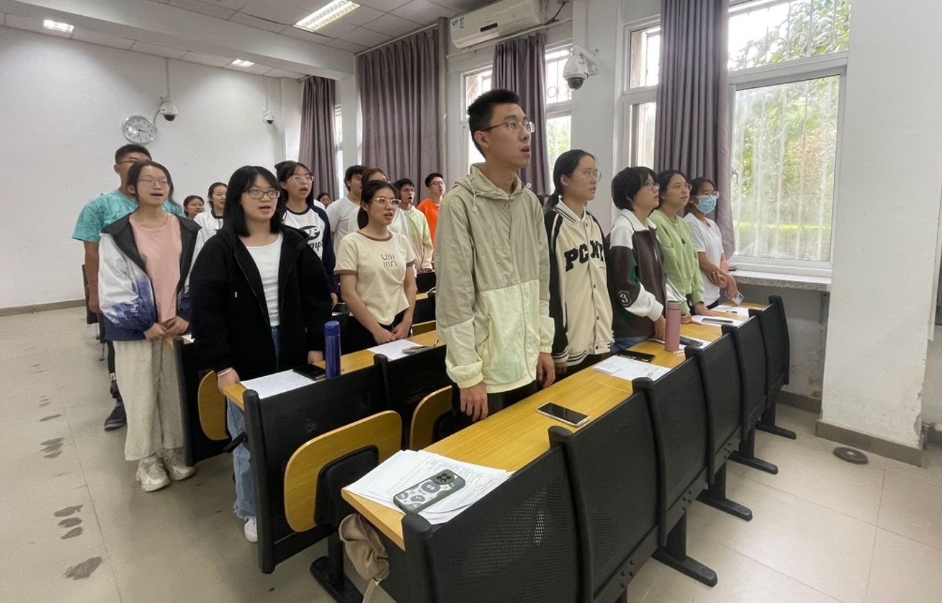 首先,全体同学起立齐唱团歌,展现了良好的精神风貌。
