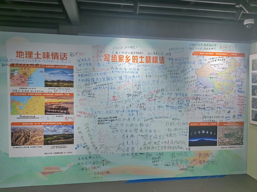 在展区的 “写给家乡的土味情话” 环节,同学们停下脚步,认真书写对家乡的深情寄语。这些质朴真挚的文字,成为地图展区一道独特风景,充分展现了同学们对家乡的热爱与眷恋。