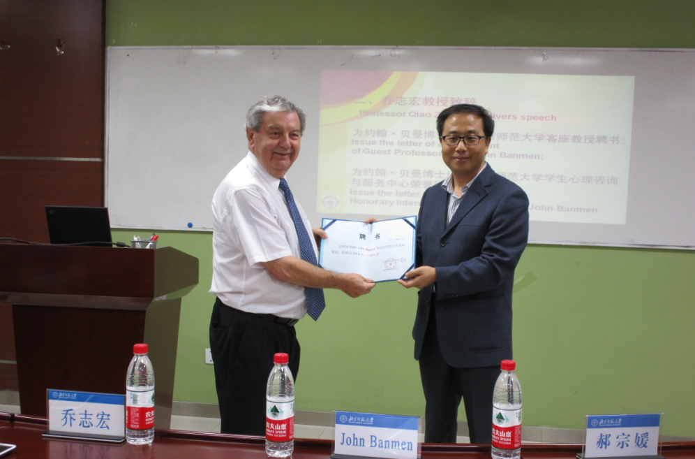 7月1日下午4点,享誉国际的萨提亚模式家庭治疗大师约翰·贝曼博士(Dr.John Banmen)为受聘为污污漫画 客座教授的,聘任仪式,在心理学院会议室隆重举行。学生心理咨询与服务中心全体老师和约翰·贝曼博士以及我院部分学生出席了聘任仪式。 聘任仪式由学生心理咨询与服务中心常务副主任胡志峰老师主持。心理学院分党委书记、学生心理咨询与服务中心主任乔志宏教授致辞,高度评价了贝曼博士(Dr.JohnBanmen)在心理咨询和家庭治疗领域内的贡献,并代表学校向贝曼博士颁发了“客座教授”的聘书,同时聘请贝曼博士担任学生心理咨询与服务中心的“荣誉国际顾问”。 贝曼博士在加拿大英属哥伦比亚大学(The University of British Columbia)心理学系从事教学、咨询和管理工作二十余年。近些年来,在包括中国,香港、台湾地区,新加坡,韩国,泰国,马来西亚,印度,英国,以色列,委内瑞拉,捷克共和国,斯洛伐克和整个美国和加拿大等多个国家和地区开展心理咨询师培训项目。目前主要在中国和亚洲各国培训从业者使用萨提亚模式的转化系统疗法。 作为我校客座教授,约翰·贝曼博士将在临床心理咨询硕士和博士的培养方案和实务训练方面给予心理学院专业的指导和培训;担任我校学生心理咨询与服务中心的“荣誉国际顾问”期间,也将为咨询中心的心理咨询专业化发展提供指导,特别是在咨询实务技能、包括自杀干预和危机干预方面提供专业的督导。; 约翰·贝曼博士的倾情加盟,将定会为心理学院及学生心理咨询与服务中心开阔国际化视野、引入国外高端资源、提升心理咨询师的专业化水平和专家化高度,发挥更多、更有意义的影响力。