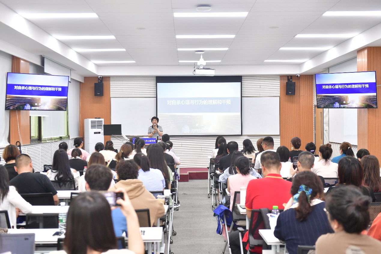 在开班仪式后,杨丽教授以“如何理解自杀心理与行为”开启了本期培训课程。杨丽教授在理论层面为学员们讲授自杀的定义、分类、影响因素等基础概念,在应用层面详细介绍了自杀风险的评估方法、自杀的个体干预技术与系统干预策略,并通过案例分析中示范自杀风险的评估流程和自杀的合作式评估与管理方法。此外,张继明副教授向学员们讲授自杀危机发生后的团体干预策略,并通过分组演练促进学员们运用团体干预方法的能力。