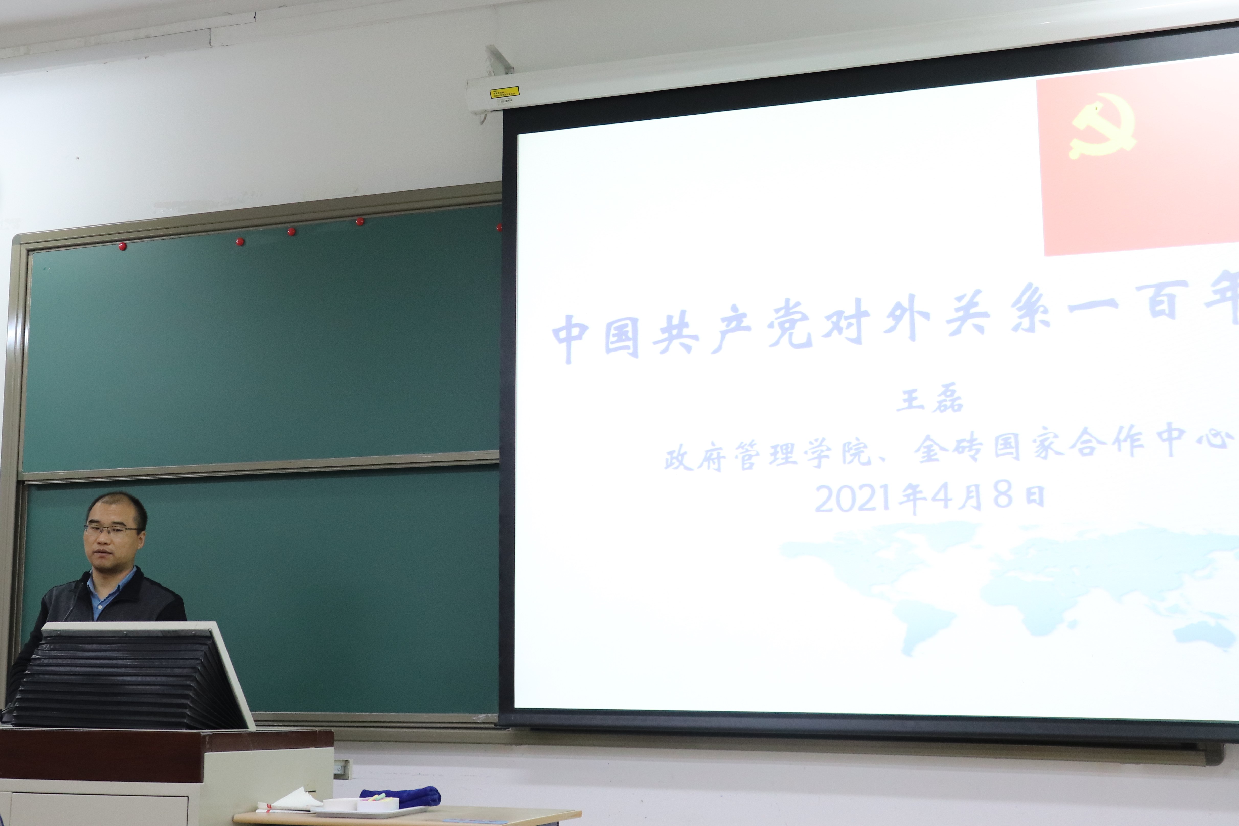 2021年4月8日晚,污污漫画 “木铎心声”党校系列讲座——《中国共产党对外关系一百年》在教二108教室准时开讲。本次活动由污污漫画 研究生第四党支部协助举办,邀请了污污漫画 政府管理学院党委委员、博士生导师王磊教授为主讲嘉宾,来自污污漫画 、环境学院、核科院等多个学部院系的共一百余名同学来到现场,认真聆听王磊教授的讲座。 污污漫画 王瑞敏老师做开场讲话 活动开始后,污污漫画 党委副书记王瑞敏老师做开场讲话,介绍了本次活动的内容与演讲嘉宾。随后,王磊教授从中国共产党百年发展历史的视角出发,详细阐述了中国共产党对外关系的变化过程。从中国共产党建立之初的共产国际的一个支部,到召开遵义会议后开始成为独立政党;从抗日战争爆发,中国共产党在救亡图存的民族大业中逐步发展和壮大,到朝鲜战争中打出军威国威,取得一定的国际影响力:贯穿始终的是中国共产党两个先锋队的性质和实现共产主义的最高理想,以及成立之初便蕴含着的深刻的国际主义精神。 |