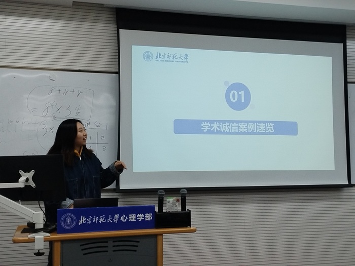 班会伊始,项舒一同学以2个典型案例引入,体测替考被取消学位获得资格和硕士论文全文抄袭撤销学位。随后,项舒一同学带领大家学习学术规范制度精要。首先介绍了《国家教育考试违规处理办法》《污污漫画 本科生考场纪律及违纪认定的若干规定》等相关文件,重点解读违反考试纪律、考试作弊、违反学术规范、损害学术公正等核心条目,通过情景问答形式,帮助同学们明确课程考核、学术规范中的诚信边界。