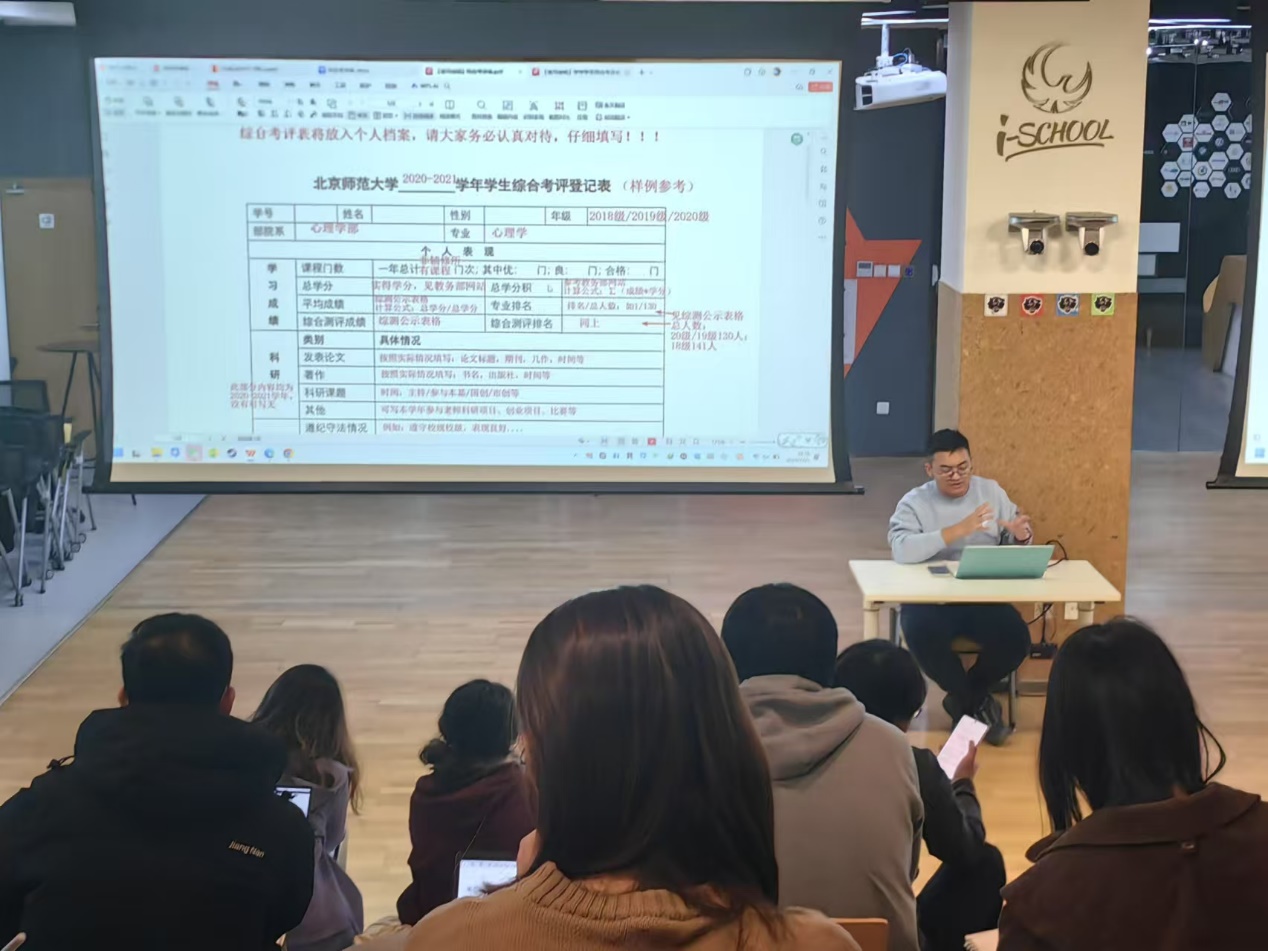 首先,进行的是班会活动,班长首先就最近社会上发生的一些恶性突发事件进行了主题安全教育,旨在告诫同学们在面临突发事件时需要注意安全,并且介绍了一些应急处理的技巧。之后,班长介绍了关于综合考评表的一些填写的注意事项,并且详细介绍了所需填写的内容。