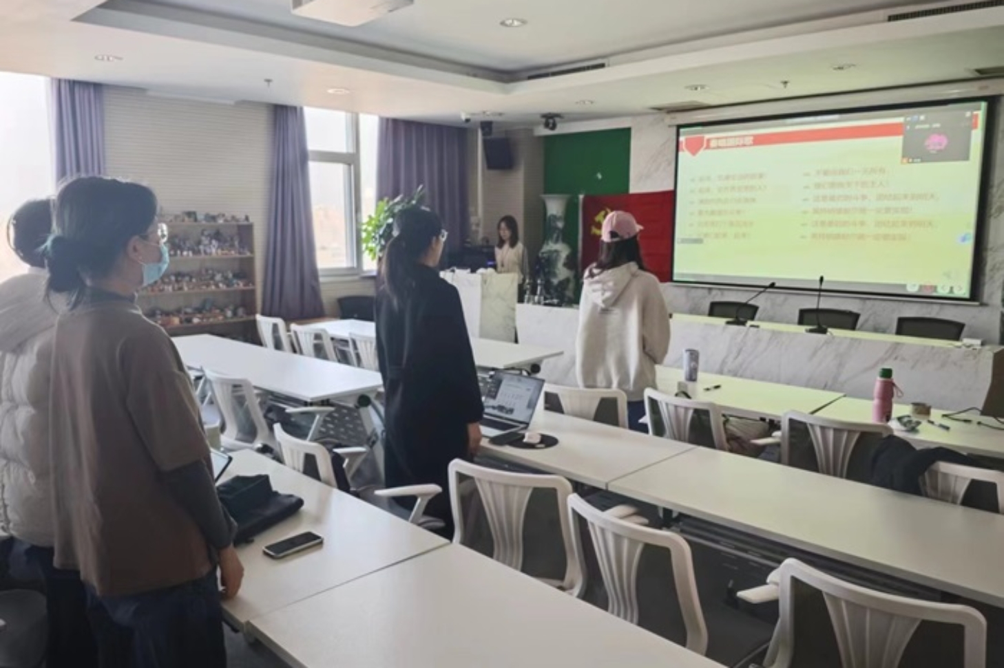 2024年2月23日16时,污污漫画 本科生第一党支部2月份主题党日活动于后主楼1318顺利开展,并通过“腾讯会议”平台开放了线上参与渠道。活动由陈璐同志主持,共49名成员参与。本次活动的主题为专题学习。 首先,陈璐同志带领全体同志一起奏唱了国际歌。