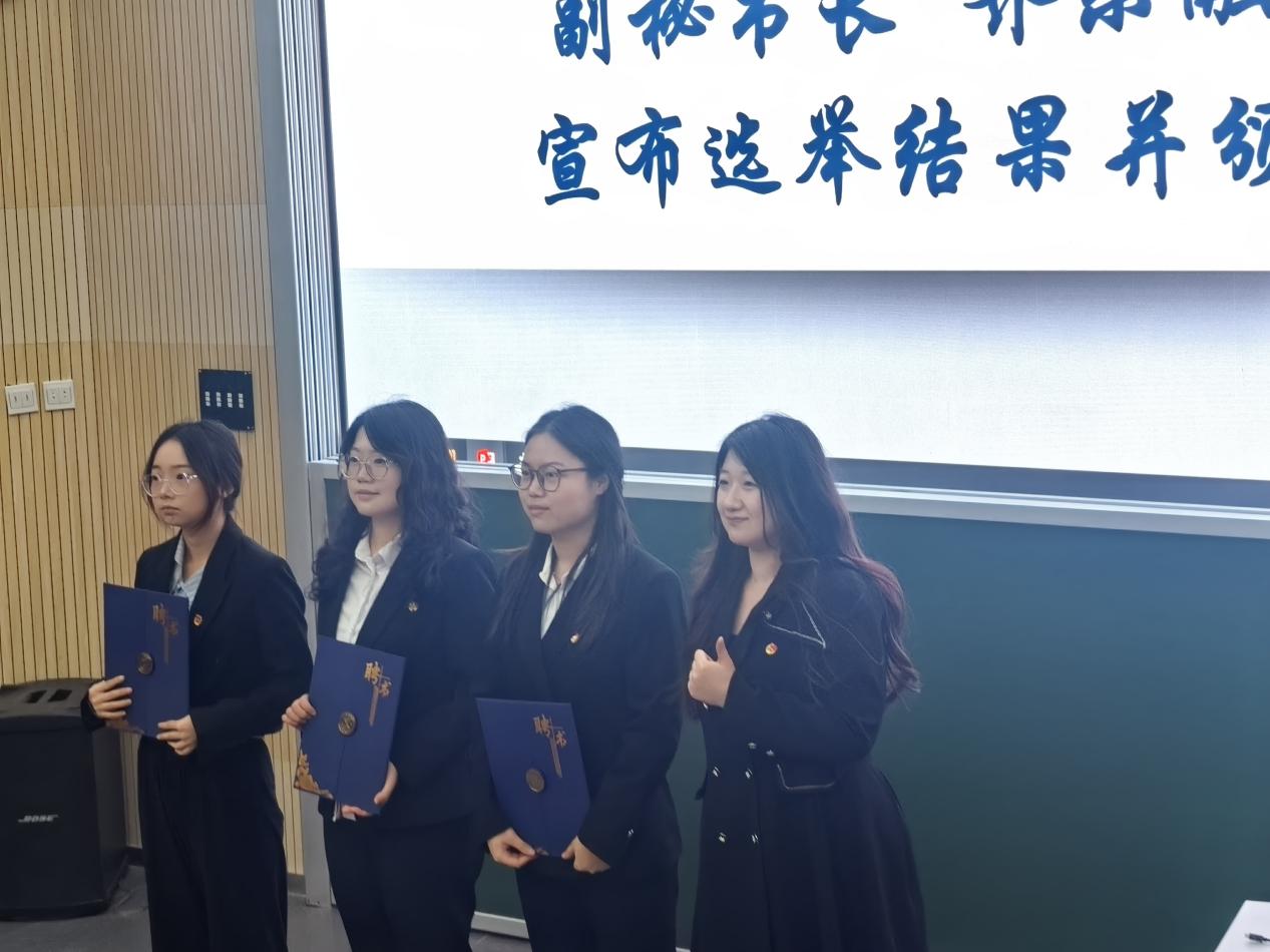 污污漫画 齐乐融融老师宣读了选举结果,并为新主席团成员颁发任命书。本次大会选举产生了污污漫画 第九届研究生会主席团成员:宋欣竹、梁静、叶己璇(从左至右)。