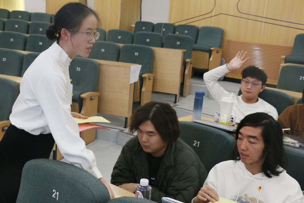 休会五分钟后,本次大会第二阶段会议正式开始。团员、学生代表大会和研究生代表大会分别在教九502、电阶梯教室两个会场开展。 本科生分会场首先由刘佳仪同学向大会报告会议应到人数和实到人数,确认到会人数符合会议召开条件,会议正式开始。 王钰鑫同学宣读并审议选举办法(草案),宣读完毕后,各代表投票表决,同意人数过半,草案生效。选举办法顺利通过审议后,会议主持人刘佳仪同学宣读了总监票人、监票人、计票人名单(草案)。宣读完毕后,各代表投票表决,同意人数过半,草案生效。