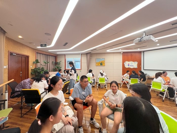 随后开展的“用双脚丈量房间”环节,则进一步帮助大家在轻松的走动中熟悉场地、消除陌生感。在紧接着的自我介绍环节中,同学们首先两两配对进行交流,继而逐步扩展至四人、八人小组,现场气氛温馨热烈。