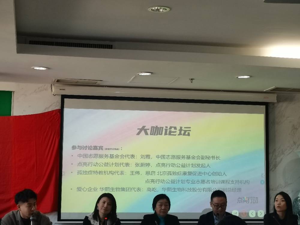 点亮行动公益计划是在中国志愿服务基金会专项设立的关爱孤独症儿童成长公益项目,中国志愿服务基金会副秘书长刘霞女士首先分享了中国公益慈善事业与公益创业的前景展望,指出要围绕“点亮希望,寻找光”的理念,聚焦、关爱孤独症儿童的成长。接下来,在青年创业就业领域有着丰富经验的陈郁教授,上台分享了该如何走进公益创业项目,寻找自己的社会价值。。最后一项分享由点亮行动公益计划发起人张蔚婷带来。她分享了如何作为个人、团队投身公益事业,充分发挥个人和团队价值,真正走上公益创业的道路。接着是本次活动的重要环节——大咖论坛,由刘霞女士、张蔚婷女士、王伟先生、高屹女士分享自己在公益事业中的经验。刘霞女士运用商业模式反哺公益项目,并分享了公益志愿者的关键性;王伟先生认为公益创业是公益事业可持续发展的必要方式,与大家讲述了从事孤独症康复工作中印象最深的事;高屹女士将公益项目有创造性地与商业结合,分享了爱心企业华熙生物集团坚守公益过程中的故事;张蔚婷女士指出实践是非常重要的环节,讲解了专业的公益志愿者能得到的收获。