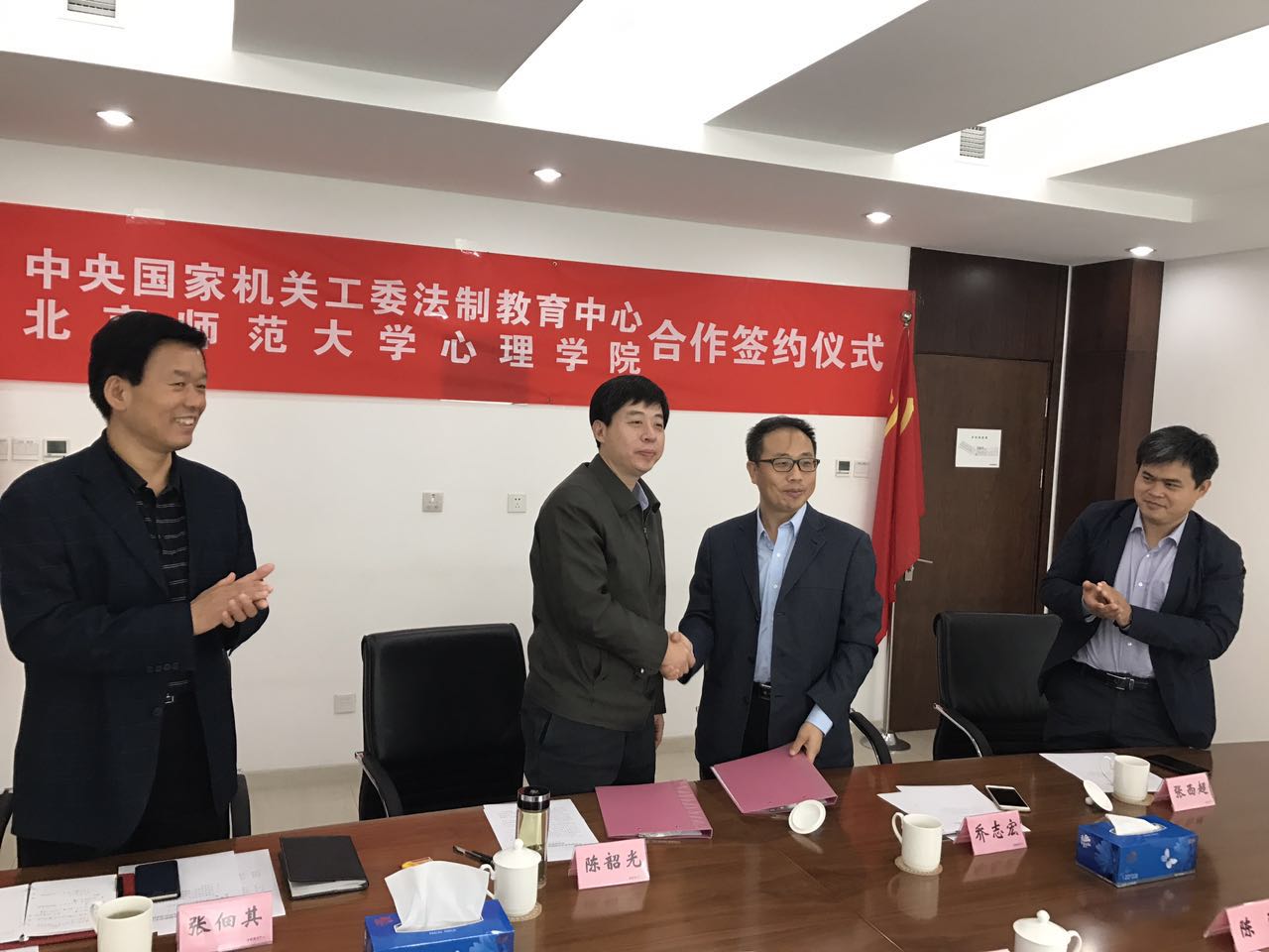 2016年10月18日上午,我院分党委书记乔志宏、张西超教授、心理健康服务中心督导师杨发辉老师前往中央国家机关工委法制教育中心,就共建中央国家机关心理健康服务基地建设相关事宜进行深入讨论,并达成合作意向,会后举行了签约仪式。 我院一行人受到了工委法制教育中心主任陈韶光、副主任张佃其等的热烈欢迎,在相关人员的陪同下参观了中央国家机关心理和体质健康服务基地,并与中心领导进行了会谈。 图一 参观中央国家机关心理和体质健康服务基地 陈韶光主任简要介绍了基地的相关建设背景,该基地是根据中央国家机关党员干部需求,以身、心、灵作为基地的整体服务导向,历时半年建成,污污漫画 心理学院作为该基地的专业技术依托单位,给予了大力支持,希望以后能在心理课程设计、师资选配、培训服务方面进行深度合作。 图二 参观中央国家机关心理和体质健康服务基地 分党委书记乔志宏教授表示很高兴能进一步加强合作,将我们所学、所用、所知能用到促进公务员心理健康中来,同时促进我院的人才培养工作。书记乔志宏建议在进一步加强合作的基础上,可以联合开展公务员心理健康的基础性研究,同时研究如何将中心购买的设备与培训课程更好的结合,形成特色服务体系。张西超教授充分肯定了这种合作的必要和广阔的前景,将心理专业、设备和该中心优美的环境相结合,能达到事半功倍的效果。 双方在充分讨论达成合作意向后,举行了签约仪式。 图三 签约过程中 图四 签约完毕双方正式达成合作意向 图五 签约结束后双方合影