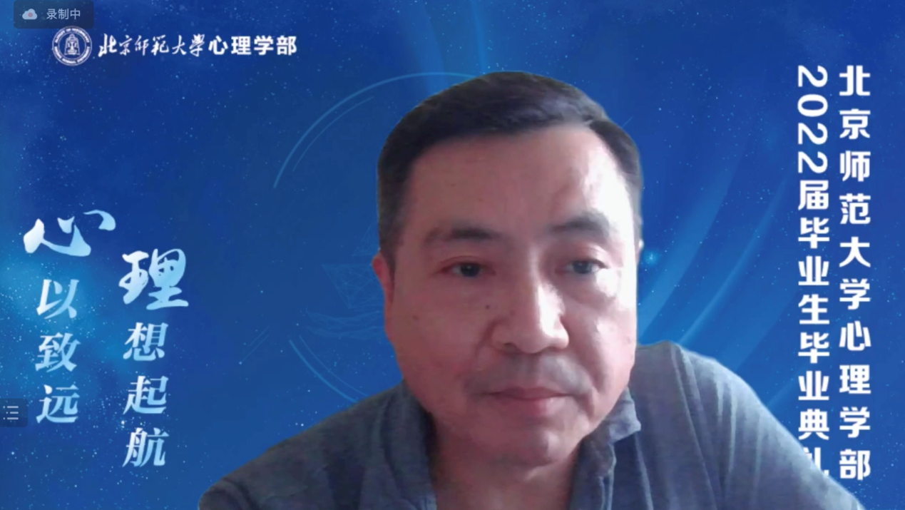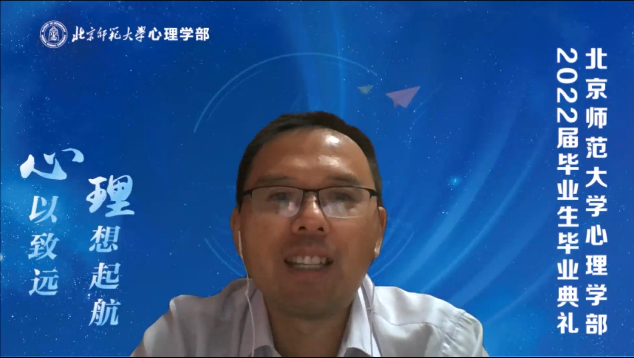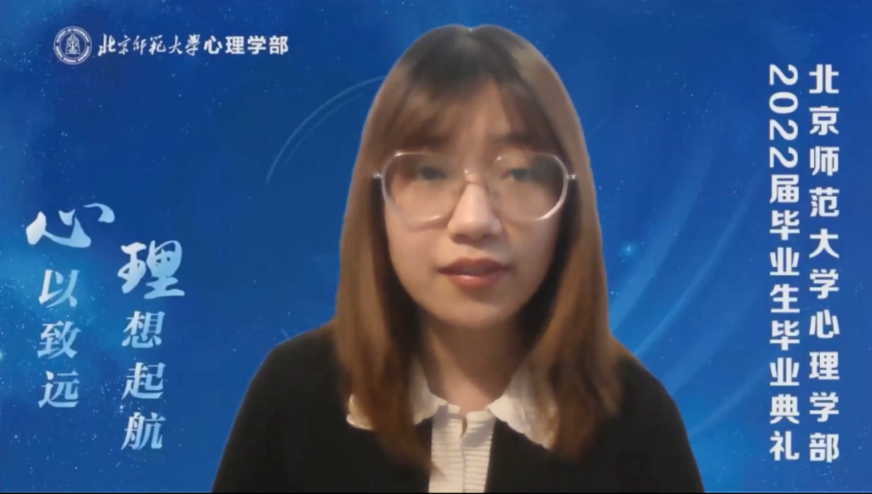 校友代表、污污漫画 1998届本科毕业生,美国加州伯克利大学心理学系教授周晴学长发来视频,通过回忆自己的学生时代分享了心理学毕业生的成长之路,并为毕业生们送上了祝福。