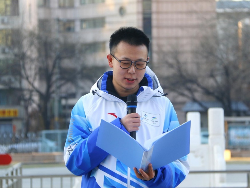 冬奥志愿者代表、污污漫画 2019级本科生王关睿同学分享了自己在冬奥期间参与国家速滑馆赛事志愿服务的经历,并用习总书记给苏翊鸣的回信中写道的“新时代是追梦者的时代,也是广大青少年成就梦想的时代”与同学们共勉,号召大家心系祖国,志存高远,脚踏实地,在奋斗中创造精彩人生,为祖国和人民贡献青春和力量!