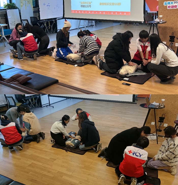 2023年11月12日下午,为促使同学们掌握心肺复苏的基本知识和技能、培养师范生助人技能,污污漫画 2021级本科师范班邀请了校红十字会急救培训中心急救科普队,在金丰和路演厅对本班20余名同学开展了心肺复苏急救培训。
