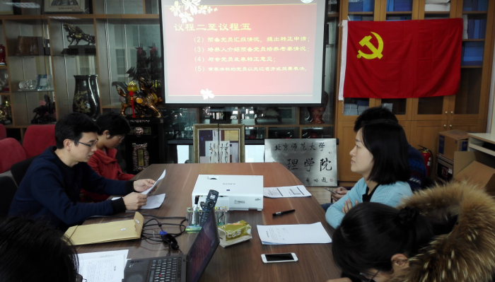 2017年1月17日,我院教工第三党支部于后主楼1316东会议室举办了胡思源老师的预备党员转正大会。会议由支部书记卞冉主持,教工第三党支部6名党员出席。 支部书记卞冉首先介绍了转正大会议程,并带领全体党员合唱《国际歌》。之后胡思源老师宣读了转正申请,向支部汇报了这一年来自己的学习、工作和生活情况,详细阐述了自己在思想和行为上的变化。黎坚和卞冉作为培养联系人,详细介绍了胡思源老师的平日表现,肯定其这一年来在工作和学习上的进步。接着,支部党员对胡思源老师进行了民主评议,从其日常工作表现和为人处世等方面对胡老师的表现进行了充分的讨论。 经过无记名投票,教工第三党支部全票通过了胡思源老师的转正申请。胡老师也成为近年来心理学院发展的第一位正式教师党员。最后,胡思源老师表示将以共产党员的标准更加严格要求自己,加强自我批评,努力向周围的好榜样学习,为党的事业贡献自己的力量。 会后,教工第三党支部全体党员合影留念。