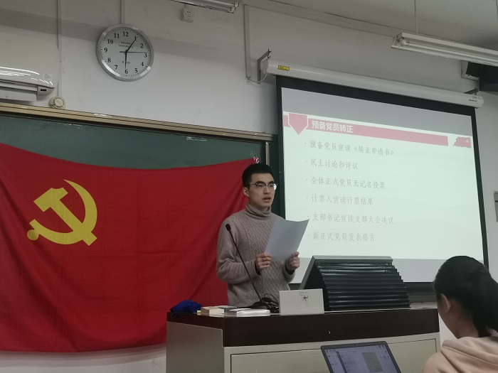 之后,预备党员李宁、谭静文和连阳宇分别向党组织汇报了他们在预备党员期间的思想、工作和学习各方面的表现。这三位同志表示自己在一年来学习到了许多,获得了许多成长,也正确地认识了自己的不足,同时也表明在成为一名正式党员后,会不断完善和提高自己。