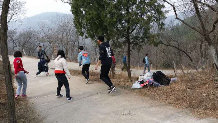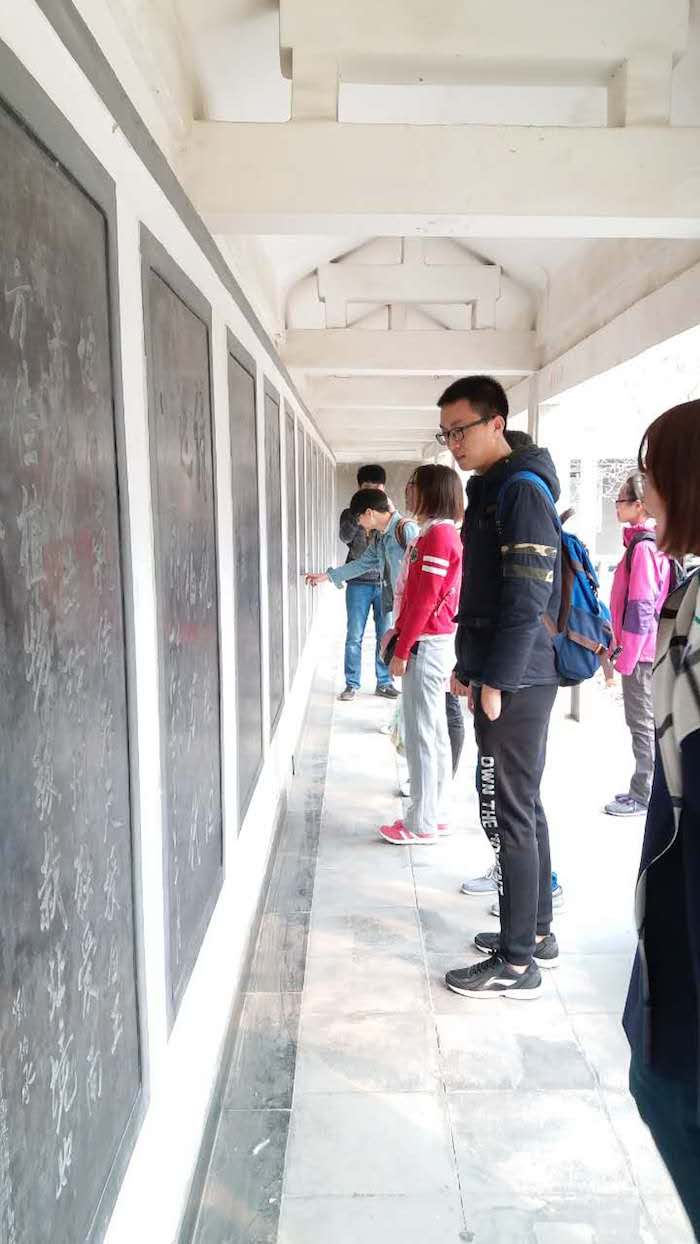 上午九点,同学们从北师大出发,乘坐一个小时的公交车之后,于十点左右到达百望山森林公园。在明确了一些安全注意事项之后,同学们进入了百望山森林公园。 沿着山路向上,一路上欢歌笑语,尽情地享受这春天凉爽的空气。 在山腰处的绿色文化碑林区中,有很多老一辈革命家对我国林业建设的题词。碑刻的书法艺术各种字体蔚为大气。里面有毛泽东、周恩来、刘少奇、朱德、邓小平、陈云等几位领导同志的碑刻,还有革命先驱孙文、方志敏等人抒发心志的题词。同学们在碑林中细心感受着我国书法艺术悠久的历史,独特的风格和革命先辈们的高风亮节。