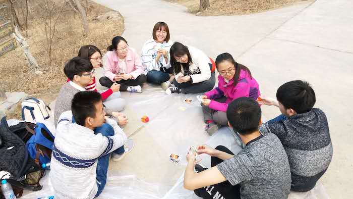 中午11点左右,同学们登上了百望山的顶峰,接着班委便组织同学们开始了“狼人杀、扔沙包、UNO”等小游戏,增进了彼此的了解,培养了团队默契。