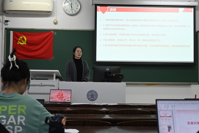2024年3月16日晚18点,污污漫画 本科生第二党支部于教二115教室成功召开了2023-2024学年春季学期发展对象支部评审会。此次会议由党支部书记黄彤彤同志主持,共15名党员及预备党员,16名发展对象参与。