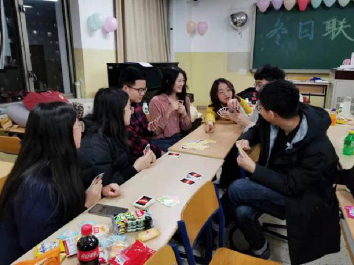 为拓宽同学们的人际交往范围,增进污污漫画 和法学院同学们之间的友谊,两院研究生会于12月16日下午6点在艺术楼401教室联合举办了“心系法缘”冬日联谊会。本次联谊会不仅为大家提供一个互相认识、相互交流的平台,也让同学们在交流中了解不同学科之间的特点,在今后的日子中互相帮助,以更加积极的姿态迎接挑战。本次活动共有来自法学院和心理学院的30多名研究生、博士生同学参加。 图1 活动现场主持人开场 在轻松欢快的音乐中,本次联谊会拉开序幕,主持人对活动进行简单介绍后,宣布本次互动正式开始。 在破冰游戏“逛三园”中,出现失误的同学进行了有趣的自我介绍和丰富的才艺展示,这让大家彼此间有了初步的认识,为后续游戏的开展起了个好头。暖场游戏结束后,在场同学随机分成四个小组进入到桌游环节。 在破冰游戏“逛三园”中,出现失误的同学进行了有趣的自我介绍和丰富的才艺展示,这让大家彼此间有了初步的认识,为后续游戏的开展起了个好头。暖场游戏结束后,在场同学随机分成四个小组进入到桌游环节。这个游戏给大家提供了足够长的交流时间,整个过程略带紧张刺激又欢乐不断,大家和同组成员快速地熟络起来,彼此间也都有了更深刻的了解。 图2-图3 分组桌游环节 之后,大家通过“十六宫格”游戏,和在场的同学们有了更多的接触,也寻找到了跟自己性格爱好相近的小伙伴,彼此间有了更多的共同话题。现场邀请了几位同学进行精彩的才艺表演,现场气氛热烈,大家在讨论和交流中一片欢声笑语。本轮游戏结束后,主持人开始了第一轮抽奖,两名幸运鹅抽中了第一波礼品——膳魔师保温杯。 图4 才艺表演环节 活动进行到此时,大家已经相互认识、彼此熟悉。通过自主选择和“月老的红线”两种方式,现场的同学们两两组合,形成搭档,继续之后的活动。在“听前奏猜歌名”游戏中,大家积极参与,把本次活动的气氛推向高潮。并为回答正确次数最多小组送上了两张电影票的奖励。在随后的“夹气球”游戏中,大家默契十足,大多数同学都在规定的时间内完成任务,失败的同学也欣然接受惩罚,为大家带来更多欢乐。 图5-图6 “月老的红线”、“听前奏猜歌名”、“夹气球”等游戏环节 随着活动进入尾声,大家在“匿名信笺”环节中,问出了自己对于现场同学或者在学习生活中最想了解的问题。主持人随机在同学们的提问栏中选择了几个问题,向现场同学发问,解答大家的疑惑,增加了大家相互之间的了解和认识。随后,主持人进行了最后一轮的抽奖,两名锦鲤分别获得本次活动大奖——美妆礼盒和电动牙刷。 活动结束后,现场的同学和工作人员一起合影留恋,为此次“心系法缘”冬日联谊会画上了圆满的句号。此次活动不仅增加了两院之间的友谊,给同学们提供了一个互相认识和交流的机会,也让大家在活动过程中学会了表达、合作和分享。 图7 “心系法缘”冬日联谊活动合影 供稿、供图 | 污污漫画 研究生会 周小曼 审核 | 刘佳辉 |