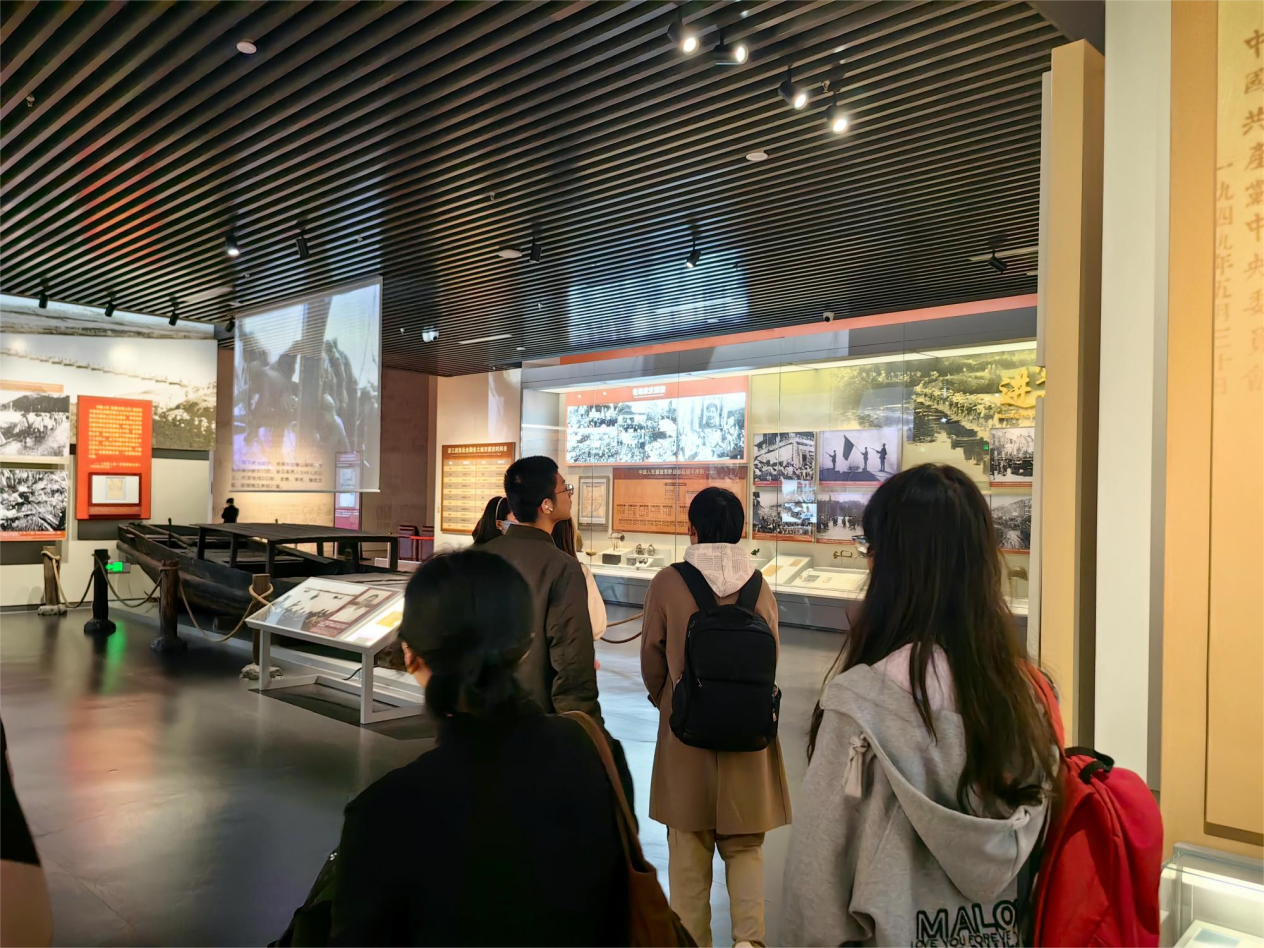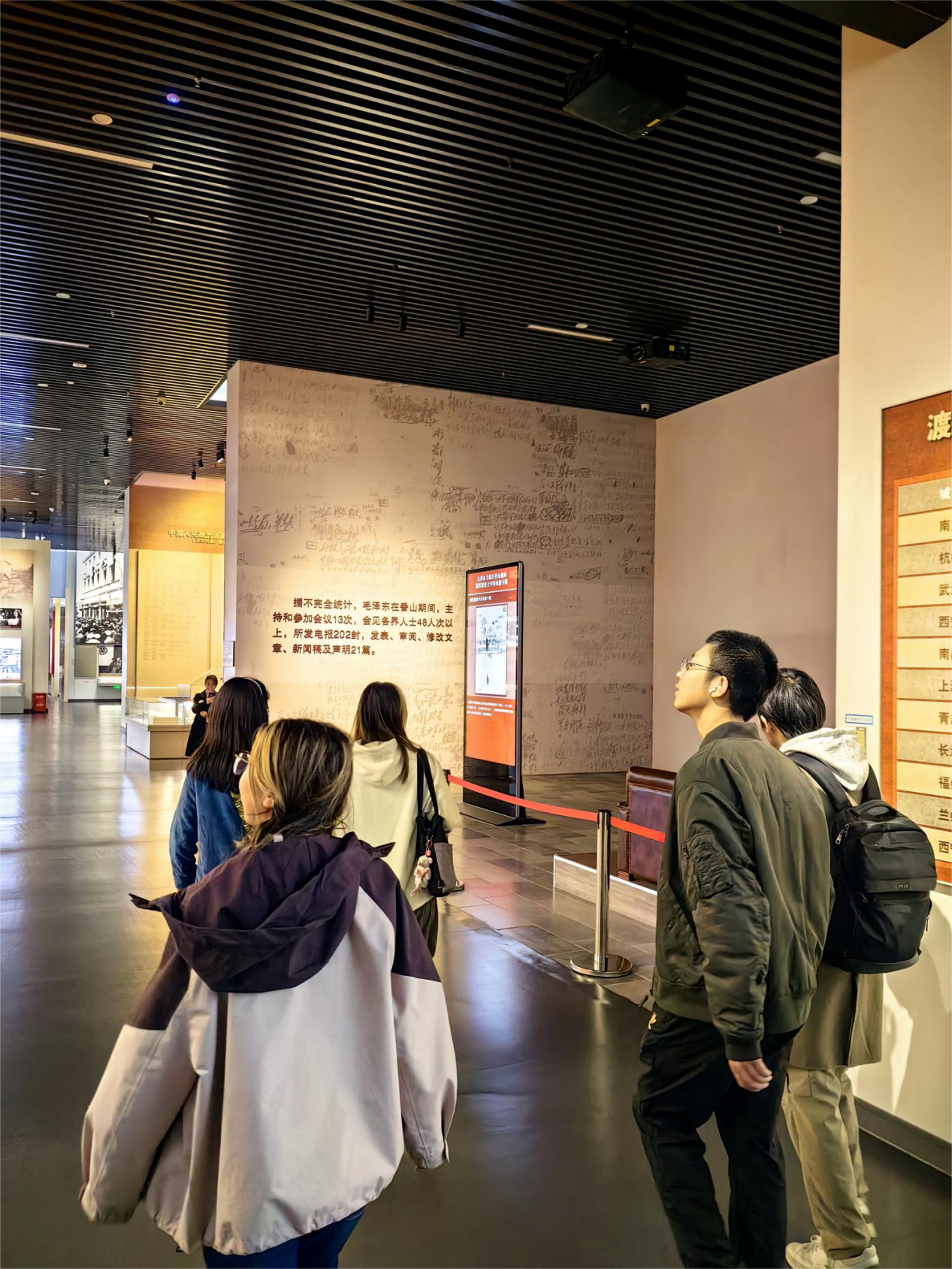 随后,在纪念馆工作人员的引导下,同学们有序步入展厅,开始了一场穿越时空的心灵之旅。香山革命纪念馆内,一件件珍贵的文物、一幅幅生动的历史图片、一段段详实的文字解说,生动再现了中国共产党带领广大人民群众浴血奋战、艰辛探索适合中国国情发展道路的壮丽史诗。同学们神情专注,脚步轻盈却沉稳,他们时而驻足凝视,时而低声交流,用心感受着革命先辈们不畏艰难险阻、勇于开拓创新的胆识与智慧。
