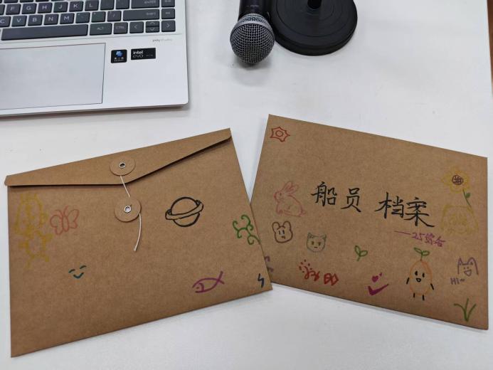 在自由表达(储存档案)环节,同学们在白纸上自由写下或画上“对大学生活的期待”“想对三年后的自己说的话”“对这次活动的感受”,最后这些丰富的想法被收藏到两个信封中,等待着未来的某个时刻再次被打开。