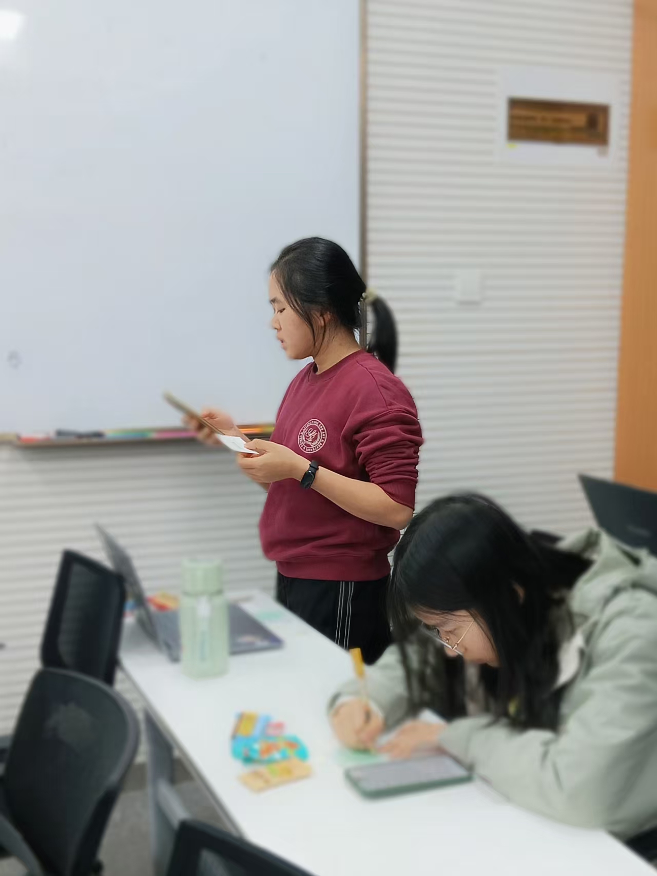 紧扣国家战略,激发青年思考。团支书邵小雅首先介绍了“十五五”时期国家发展的重点方向,包括科技自强、乡村振兴、碳中和、人工智能、健康中国、海洋强国等关键领域。她强调,作为心理学专业的学生,不仅要掌握专业知识,更要思考如何将心理学服务于社会心态建设、心理健康促进、组织行为优化等领域,在国家战略中找准自己的位置。 在互动环节“共话专业与国家的连接”中,同学们随机抽取写有国家战略关键词的卡片,结合心理学专业背景,用1-2句话分享自己的理解与想象。 有同学抽到“海洋强国”,提出:“心理学能够帮助深海作业者克服恐惧,保证深海工作的正常开展。”