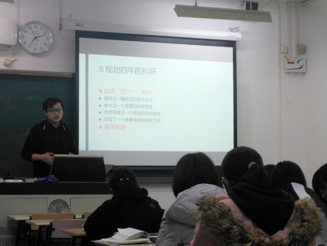 2018年11月5日晚19:00,污污漫画 学业辅导室在教二109教室顺利举办2018级“新老生经验交流会”。本次活动邀请到了污污漫画 高年级优秀学生代表2015级陈子卓、2016级陈作为和苏嘉宝同学分享学习和生活实践经验,近30名大一新生参加了交流会。 2015级陈子卓同学着重分享了专业学习的重要性。他提出要重视专业基础课和方法性专业必修课,在尝试中找到自己的节奏,以“发展”作为学业的目标。要规划自己的科研,并循序渐进。要着眼未来,有大眼光、大志向。 陈子卓同学做分享交流 2016级陈作为同学从四个方面为大一学生提供建议。首先,谨慎选本基,要有项目、队友、导师。其次,批判性听课,有重点地听课。此外,专业接触人,培养专业素养,多关心前沿发现。最后,交友深层次,在大学找到聊得来的朋友。 陈作为同学做分享交流 2016级苏嘉宝同学重点谈了社团活动,希望大家把社团看作放松身心的地方。社团分为组织活动类和娱乐类。要了解学生组织,学会组织活动。如果学生工作占用了你的学习时间,学习时间就要占用娱乐时间。要合理安排社团活动,以学业为重。 苏嘉宝同学做分享交流 2018级同学提问 分享会结束后合影 台上分享结束后,新生们又提出了自己的具体困惑,与师兄师姐们进行了现场交流。经过此次分享,大一同学们对自己的生活、学习有了更丰富的认识。活动得到了积极的回应,对同学们的专业发展有着深刻的意义。 来源:学业辅导室 |