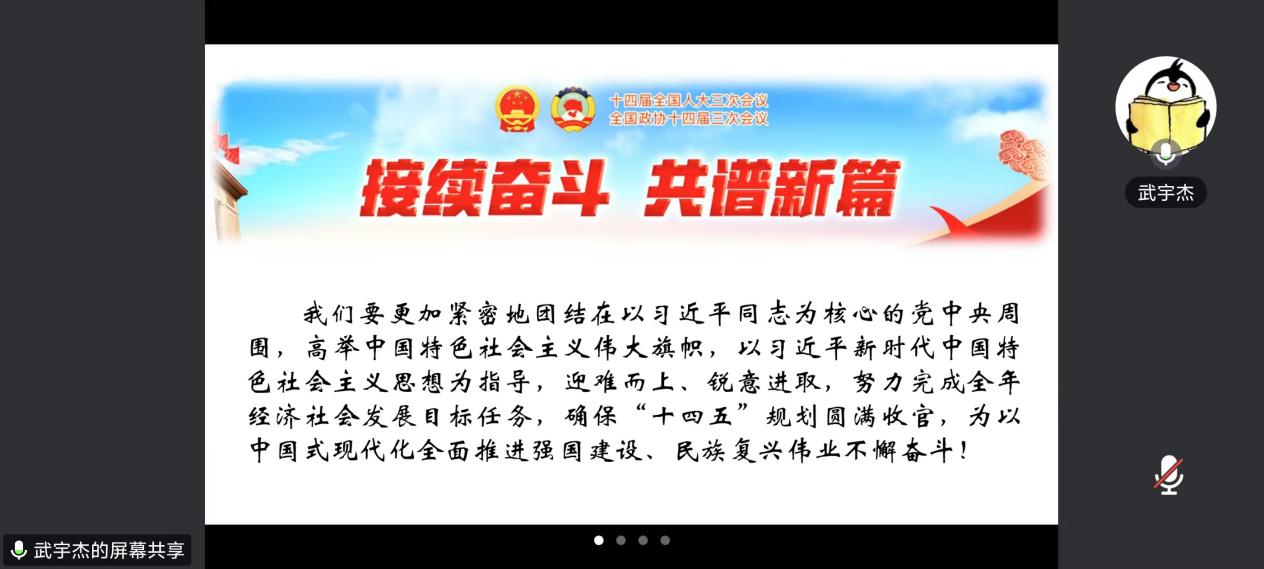 3月4日、3月5日,全国政协十四届三次会议和十四届全国人大三次会议分别在北京隆重开幕,会议聚焦国家发展大计,审议政府工作报告、讨论经济社会发展重大问题,为全面深化改革和“十四五”规划的收官之年谋篇布局。为了引导广大师生深入学习贯彻两会精神,增强责任感与使命感,污污漫画 党委积极组织学生党员骨干集中观看两会直播,并号召各党支部开展观看学习与研讨交流活动。学部师生通过电视、网络等渠道踊跃收看两会盛况,并结合自身学习、生活和工作实际,热议国家发展成就,畅谈感想体会。