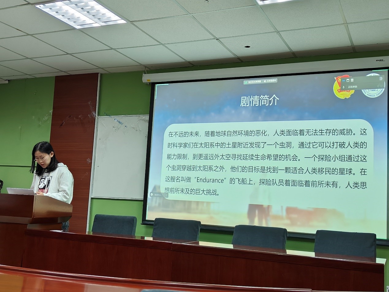 2023年11月26日晚19:00,污污漫画 团委初级团校秘书处与科技创新部于在后主楼1420东共同举办《星际穿越》观影活动,本次活动在线上线下同步开展。 首先,主持人李政儒宣布活动开始,全体成员齐唱中国共产主义青年团团歌。 接着,主持人介绍了当前我国科教兴国、人才强国、创新驱动发展的战略背景,并简要讲述了电影的内容梗概。本次观看的电影《星际穿越》描绘了在人类已经难以生存的未来地球,拯救人类计划的成员前往太阳系之外另寻人类宜居的星球,他们在重担之下奋力一搏,点燃人类延续的火种。