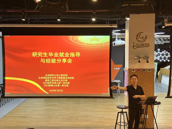 2025年7月4日19时,污污漫画 硕博就业经验分享会暨党团班活动在金丰和A座三层路演厅顺利举办。本次活动由污污漫画 认知神经科学与学习国家重点实验室、教工第七党支部、2023级学术硕士第一党支部与2023级博士生第一党支部联合主办。 本次分享会旨在深入贯彻落实《中共中央、国务院关于实施就业优先战略促进高质量充分就业的意见》精神,助力青年人才高质量发展,充分发挥教师党支部在人才培养中的示范引领作用。活动邀请了近年来实验室优秀毕业生代表:谢亚培、江亚亚、赵洲、武星辰,围绕他们在高校、科研机构、政府机关及知名企业等不同领域的求职经历、工作体会与宝贵经验进行分享,助力在读研究生明晰职业方向、提升就业竞争力。 分享会由教工第七党支部书记、2023级博士生1班班主任夏明睿老师主持,他对活动的意义和整体议程作了简要介绍。分享会分为两个主要环节:嘉宾经验分享与互动答疑。出席活动的还有国重实验室辅导员冯小霞老师、2023级硕士生班主任陈姚静老师。