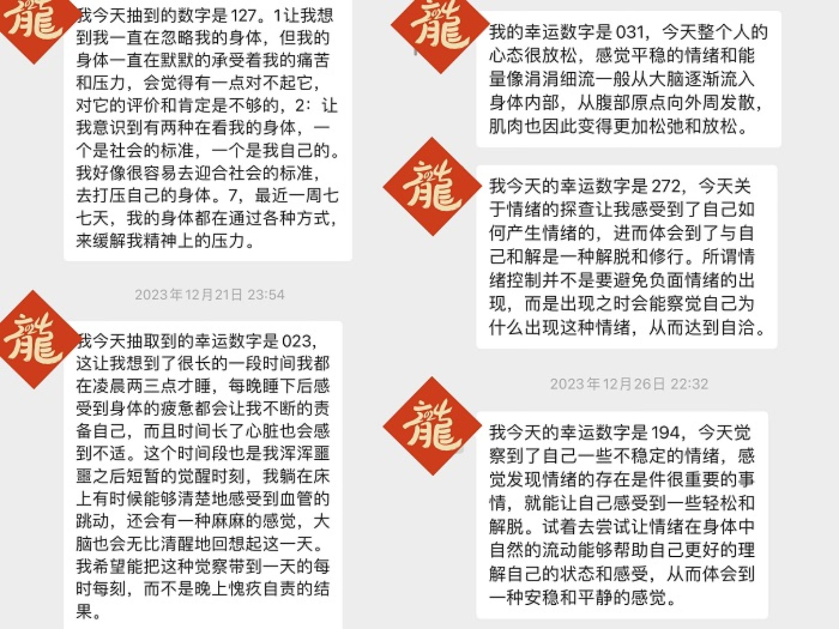 活动结束后,同学们的反馈收益良多。参与冥想活动的同学们谈到,通过这些练习,他们更加深入地认识到正念冥想的重要性和益处。他们发现,通过练习可以更贴近自己,提高自我觉察的能力。此外,同学们还提到,线上冥想打卡练习方式相互分享鼓励,感受到了集体活动的凝聚力和支持力量。总的来说,这次“解压赋能,从生活小事认识正念”冥想活动取得了圆满成功。
