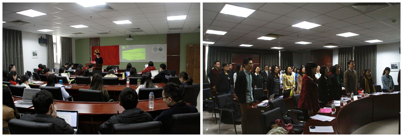 2014年10月29日、31日,我院分党委分别召开了本学期研究生和本科生的确定发展对象大会。其中研究生确定发展对象大会由发展心理研究所硕士第一党支部、发展心理研究所硕士第二党支部以及临床与心理咨询研究所党支部联合承办,本科生确定发展对象大会由本科生第二党支部承办。心理学院分党委副书记王瑞敏、宣传委员黎坚、纪检兼统战委员刘霞、党务秘书张丽霞等老师分别出席了大会。 图1 确定发展大会现场 本学期我院13个学生党支部共推荐了27名入党积极分子作为确定发展对象大会的考察对象,包括12名硕博士研究生和15名本科生。在会上入党积极分子分别就自己的入党动机、思想动态、学习情况及生活情况进行了阐述。分党委老师和各党支部支委担任评委,针对考察对象的陈述内容、现实表现以及党的最新理论对积极分子进行了提问。会后评委们根据现场答辩情况和日常表现对考察对象进行了综合评估,根据发展成熟度进行了排序。分党委结合本科生和研究生确定发展对象大会的情况拟定了待发展对象名单,该名单将在各党支部进行公示。公示无异议后,这些待发展对象将进入发展的下一步环节,进行政审、递交相关发展材料,并接受其所在党支部全体党员大会关于是否接收其为中共党员的进一步审议。 图2 积极分子在发展大会上做自我陈述 在本次大会上,王瑞敏老师强调了确定发展对象大会的性质,希望同学们将大会看做与他人交流沟通、互相学习借鉴的宝贵机会,看做是入党征程中的一个重要的里程碑。她指出,有很多同学都熟记马斯洛的需求层次理论,将追求“自我实现”视为自己的人生信条,该概念本身是很好的,但因过度引用,使得有些人把自己看得比什么都重要,而变成不健全的自我中心,成为精致的利己主义者,同学们要警惕这种现象,马斯洛本身在晚年时便超越了这一理论,提出了自我超越的需求,认为人具有为比自我更大的目标而献身的需要和自我牺牲的精神。作为入党积极分子和党员,希望大家在做好自己本职工作的同时,还应该去思考自己能为整个社会带来什么,这样才能将小我推及到大我,才能对整个社会有益。 图3 王瑞敏老师在发展会上发言 纪检兼统战委员刘霞老师也向与会同学分享了自己的入党历程,并提出了自己的希望,她提醒同学们不要将入党过程中的挫折看成“失败”,经历挫折后的积累会更加厚重;希望同学们沉下心来认真思考,这个组织是什么样的,自己追随党组织究竟是为了什么,要将组织的要求内化为自己的实际行动。 图4 确定发展大会评委合影