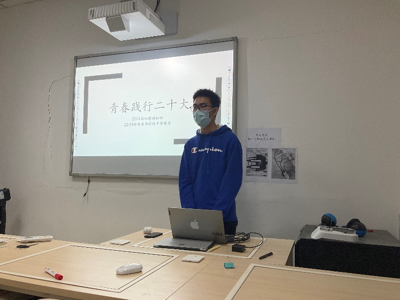 在第二环节中,张一阳同学受邀为同学们讲述他在假期的寒假调研中所做的调研项目,让大家对寒假调研项目有了初步了解,为同学们后续参加调研项目打下了基础。