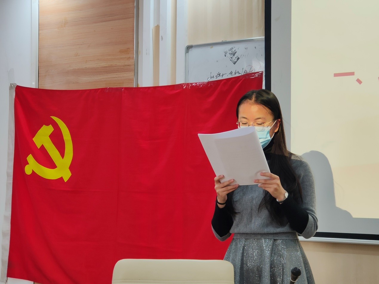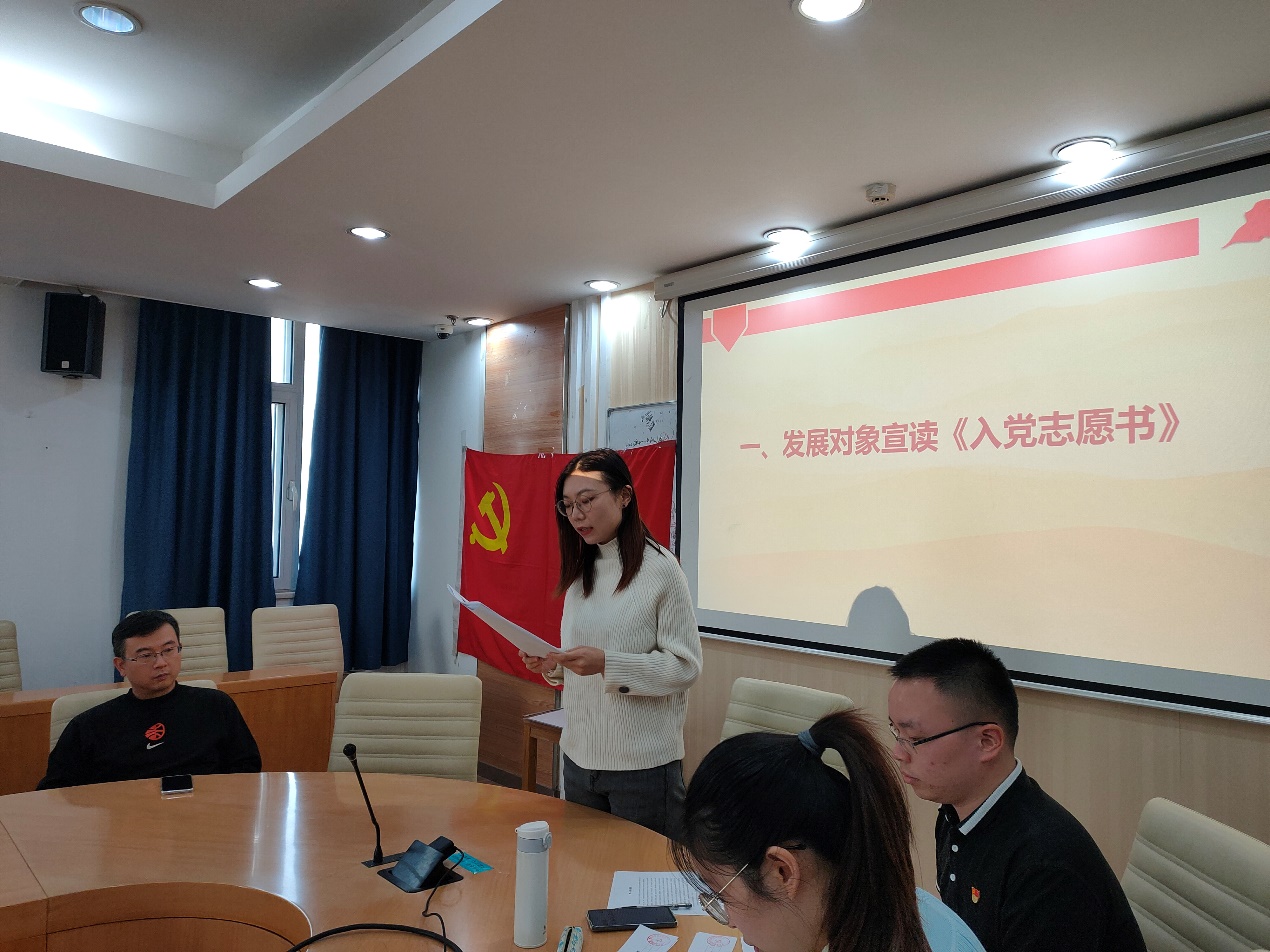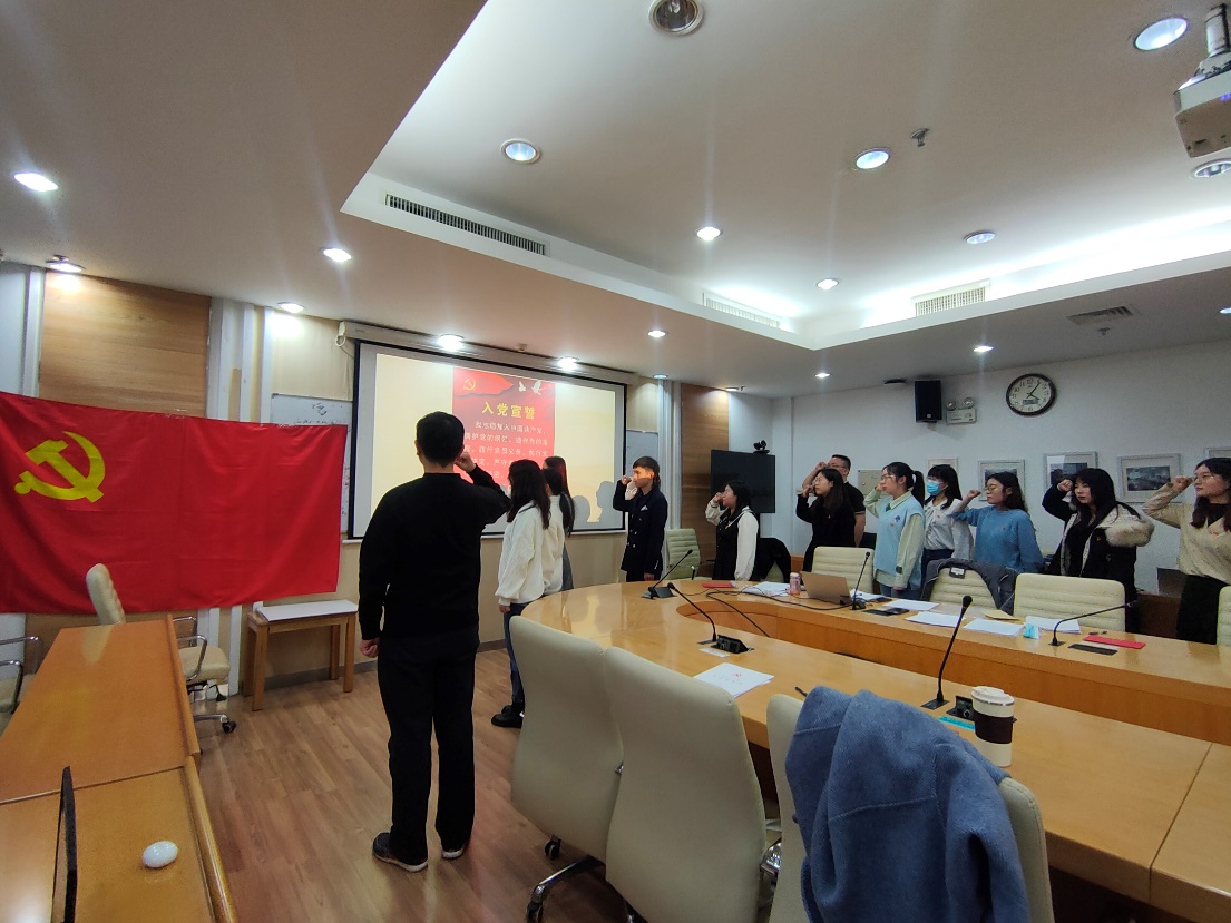 最后,党员同志进行无记名投票,并由支部书记宣读支部大会决议。最终,3名同志均被发展为预备党员,她们也分别发表了自己的感想,一致表示感谢支部其他同志的帮助和付出,自己要更加积极向党组织靠拢,更严格要求自己,争做合格党员! 在会议接近尾声时,支部书记带领全体老党员和3位新发展党员一起宣读入党誓词。此次发展大会圆满结束。