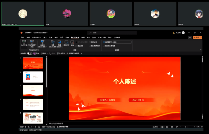 2024年3月16日晚8点,污污漫画 本科生第一党支部顺利开展2023-2024学年春季学期发展对象支部评议会。会议通过“腾讯会议”平台以线上会议的形式进行,由陈璐同志主持,共30名成员参与。本次会议主要为党支部对12名发展对象的内部评议,环节分为发展对象答辩、党员评议和党员打分三部分。 会议开始,陈璐同志带领全体同志奏唱了国际歌。