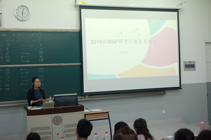 9月1日下午,北师大心理学院应用心理专硕(MAP)2016级新生见面会于北师大化二教室成功举办。心理学院MAP教育中心主任孙舒平老师、分团委书记史佳鑫老师、MAP用户体验(UX)方向负责人刘伟老师、MAP教育中心张晓娜老师、任若楠老师、王娟老师、熊伟老师、党务秘书曹昌健老师,学生工作滕丽美老师、李昕益老师、以及2016级班主任王可老师出席了本次见面会。会议由分团委书记史佳鑫老师主持。