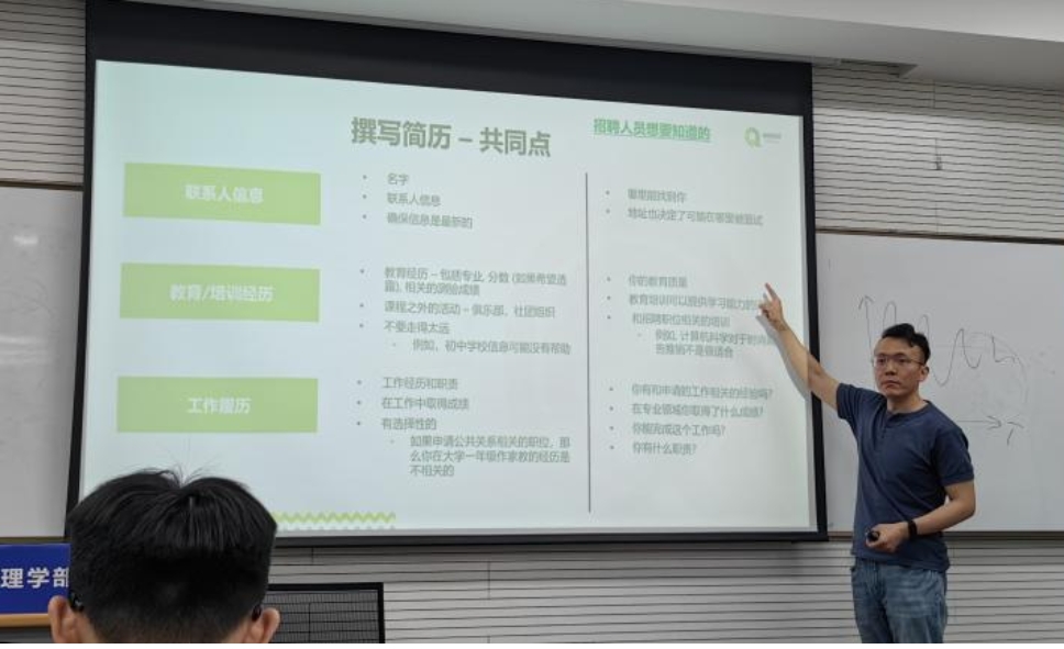 2025年4月27日晚18:00,污污漫画 2023级本科综合班在金丰和609举办了简历与面试讲座。本次讲座由综合方向的王小华老师组织并邀请了专硕MHR方向2024级的陈启轩师兄主讲。 本次讲座主要包含两个环节:如何制作一份合格的简历以及自由提问环节。 在正式介绍如何制作一份合格的简历之前,师兄向我们展示了一些隐去个人信息的简历样本以及相关的招聘信息,让我们通过比较几份简历来作出评价,并从招聘者的角度思考一份简历应具备的关键要素。随后,师兄以一份出色的简历为例,向我们阐述了撰写简历的一些基本原则和通用提示。他强调了包括联系人信息、教育背景、工作经历在内的关键部分,并从简历的递交者和招聘者的双重视角对这些方面进行了深入的阐释。此外,师兄还分享了一些能够吸引招聘人员注意的小技巧,例如:将最重要的内容置于简历的前半部分,对重点内容进行加粗但要适度,以及控制一般性信息的篇幅,避免占用过多空间。