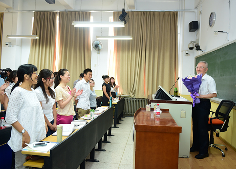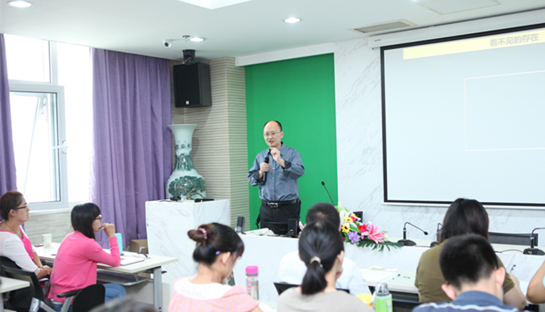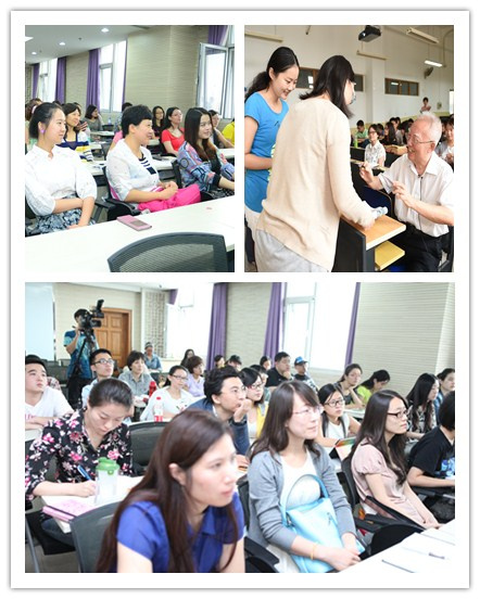 由郑日昌教授给学生讲授的心理学与人文关怀也同样博得了学生们的青睐。郑老师先用一系列行为训练帮助学生解除疲劳,又从人文的角度为学生剖析了压力的来源、类型、原因和不同的心理疗法。郑老师用朗朗上口的语言让学生轻松愉快地掌握一些实用的心理学技术,甚至有同学认为上郑老师的课就像一次有收获的放松。 图三 北师大心理学院郑日昌教授给14级应用心理专业硕士讲授心理学与人文关怀