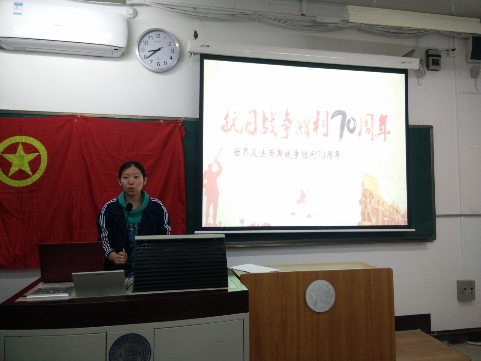 2015年10月28日星期三,在抗日战争胜利70周年之际,心理学院2014级本科3班举办了“默剧演绎抗战故事,只等你来猜”主题班会。 活动采取了分组表演默剧的形式,主题涵盖抗日时期的重要事件和人物。在分组抽签后,同学开展了热烈讨论,围绕表演主题进行了细致深入的探讨。 接着,同学们结合讨论结果,积极参与表演,倾情演绎主题,现场气氛热烈。 在本次活动中,同学们回忆和学习了抗日战争相关知识,在表演的过程中放松了心情、展示了自我。